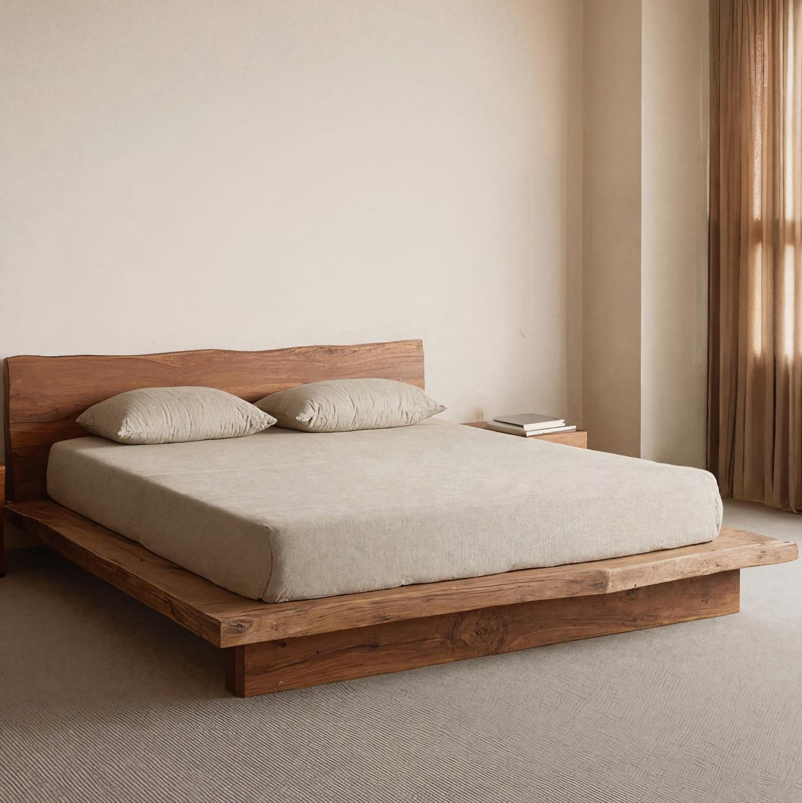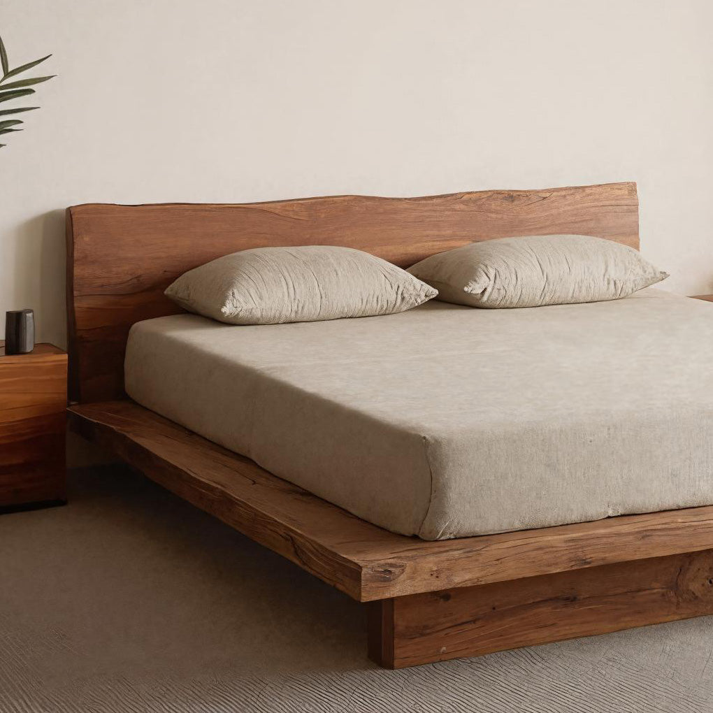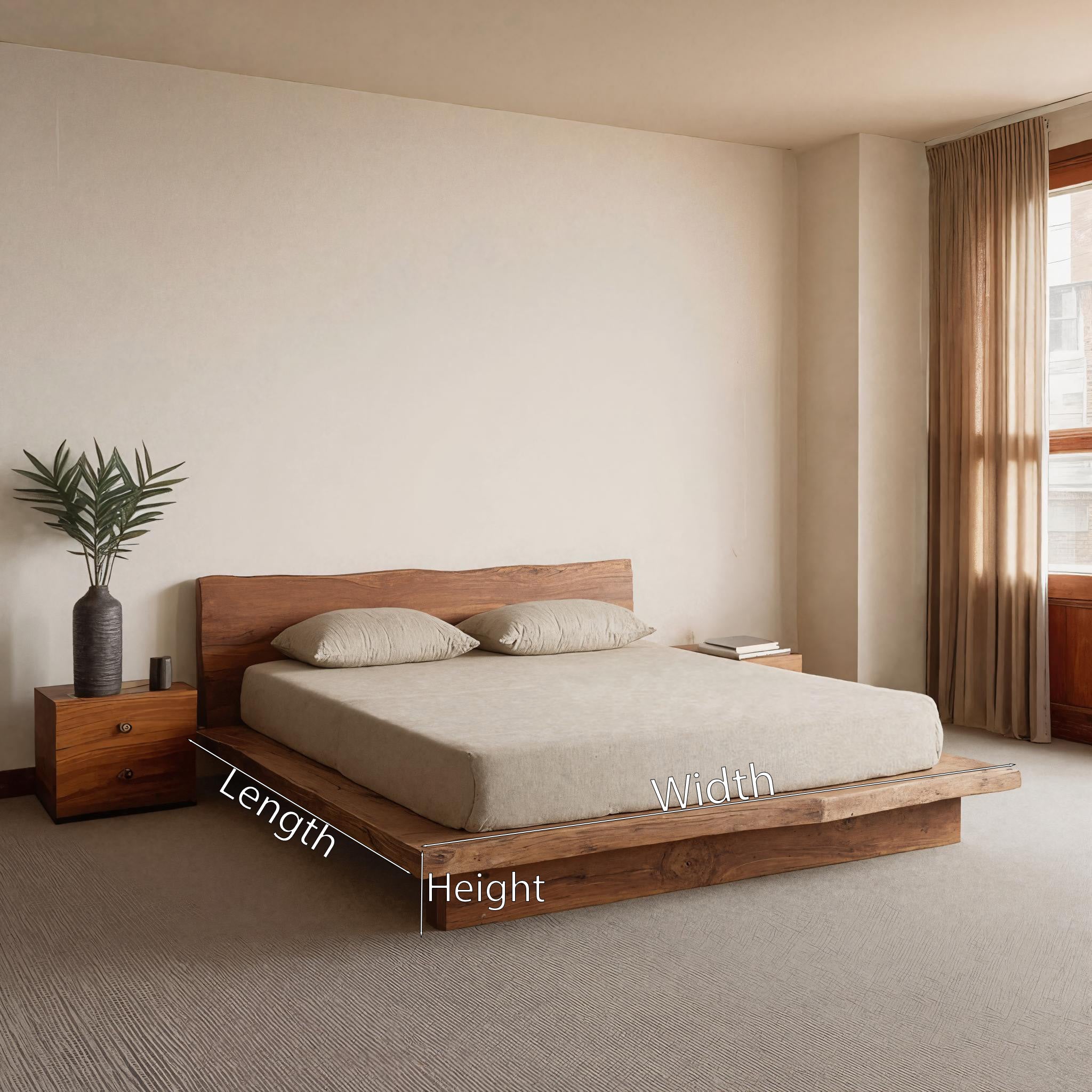 - Materials & Craftsmanship: Made from solid natural wood with expressive, flowing grain, the frame is carefully shaped with clean edges and a balanced platform structure. Each surface is meticulously sanded and finished to highlight natural color variations, then sealed with an eco-friendly protective oil finish that enhances warmth and durability. Strong joinery techniques ensure long-lasting stability and reliable support.