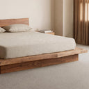 - Versatile Placement: This low platform bed integrates effortlessly into minimalist, Japandi, Scandinavian, and modern organic interiors. Its grounded design pairs well with neutral bedding, natural textiles, and uncluttered spaces, making it ideal for master bedrooms, guest rooms, or serene retreat-style interiors.