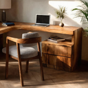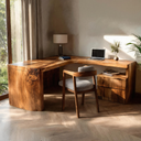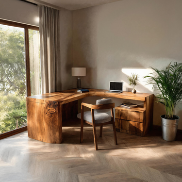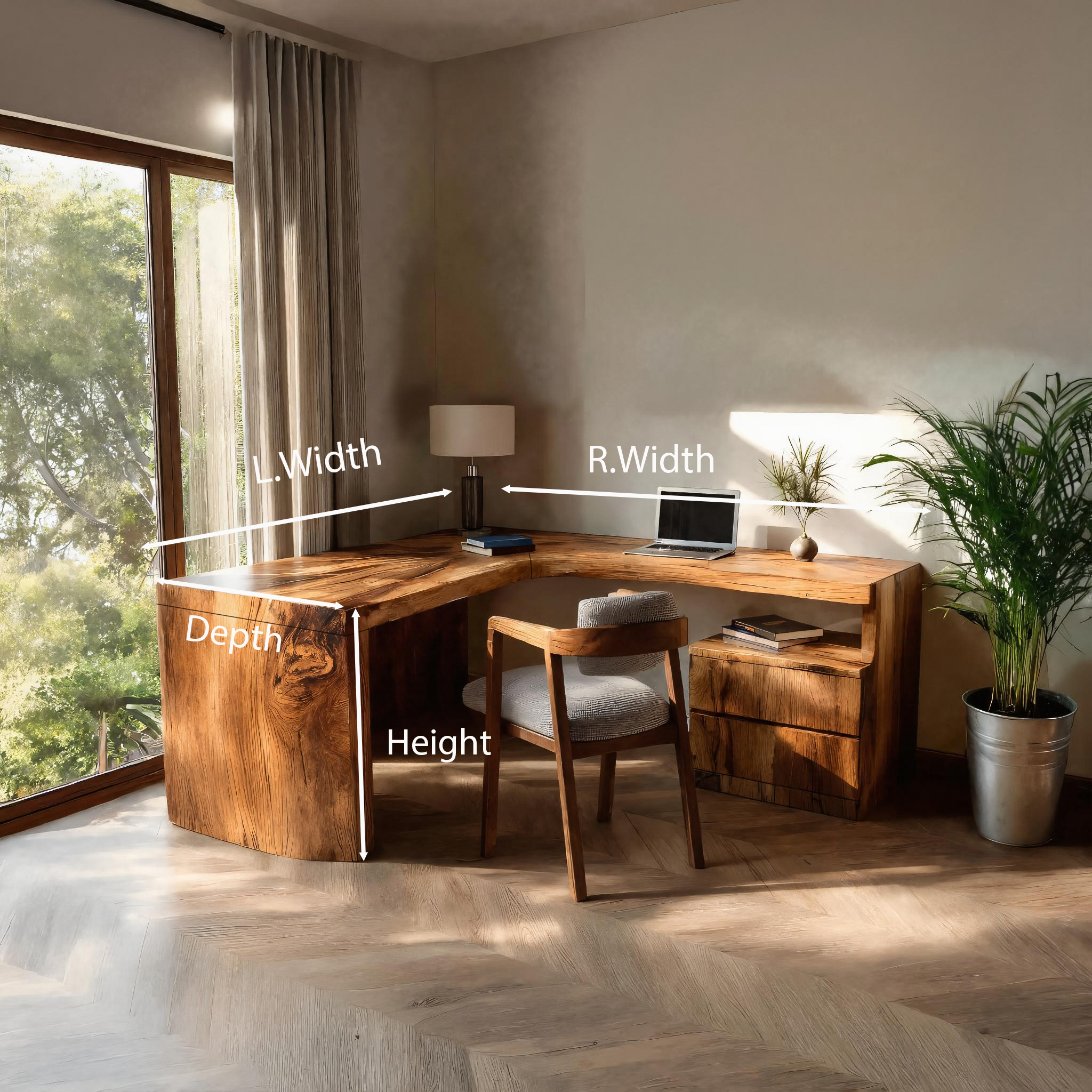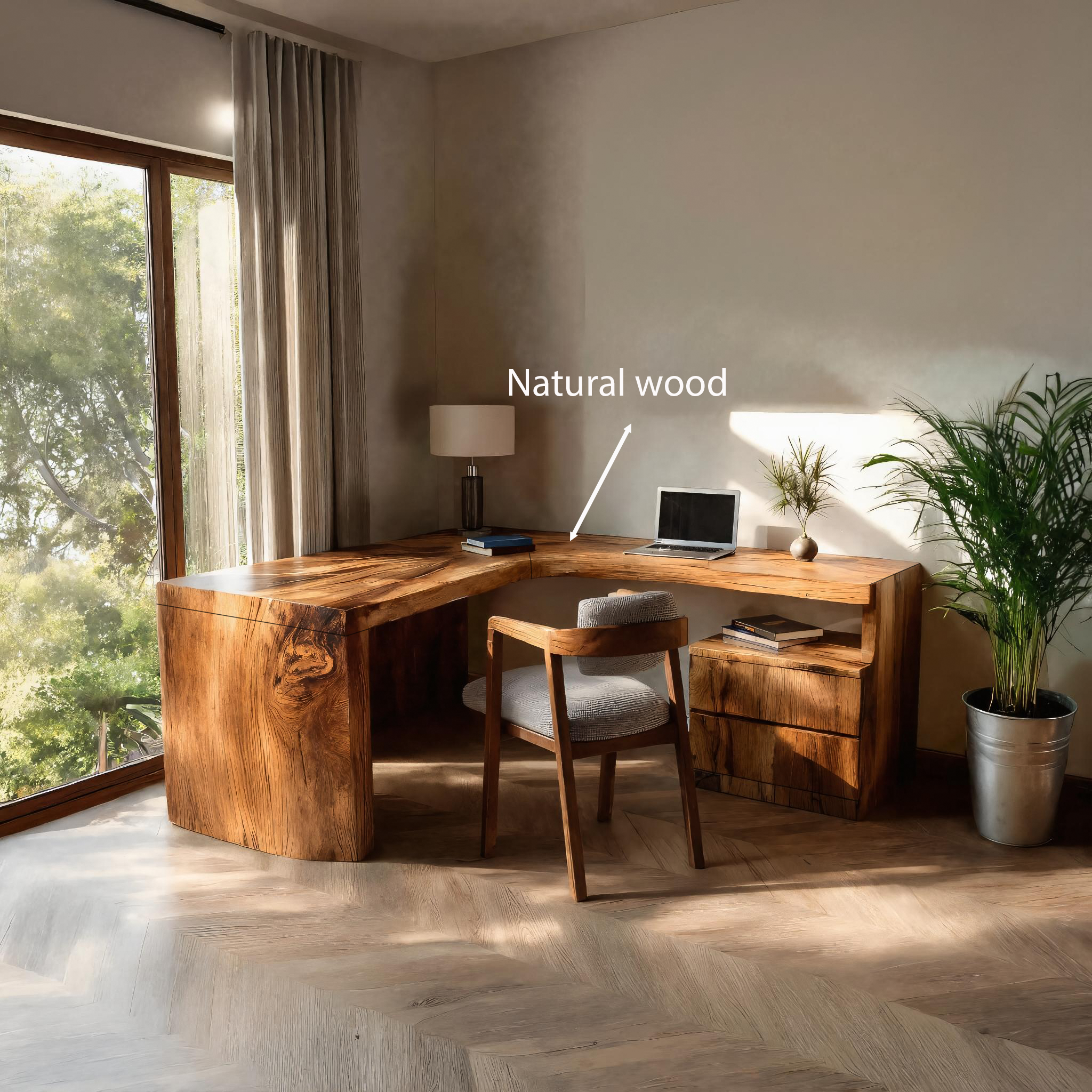 The Minimalist L Shaped Computer Desk For Home Office, modern warmth to your home office. Designed with smooth, flowing lines and crafted from solid wood, it offers a spacious work area that feels open and inviting. The seamless L-shaped design makes multitasking effortless, while the built-in drawer unit keeps everyday essentials organized and within reach. With its soft hand-finished surface, sculptural edges, and grounded presence, this desk creates a workspace that feels both stylish and comfortable.