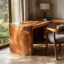 - Materials & Craftsmanship: Made from solid wood featuring striking natural grain, the desk is handcrafted by skilled artisans using traditional woodworking techniques. Finished with eco-friendly oils for a smooth, warm touch, with sculptural leg and corner shaping for a clean, modern look.