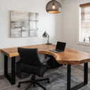 - Functional Benefits: The L-shaped configuration offers ample room for multitasking, professional projects, or creative work, while the sturdy metal legs provide stability and contrast against the organic live edge wood. The expansive surface enhances workflow efficiency without sacrificing visual harmony.
