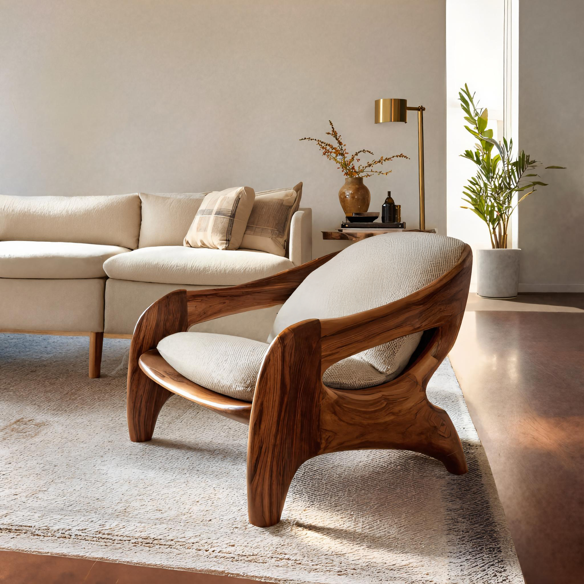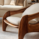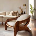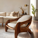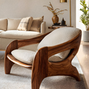 Transform your space with our Modern Sculptural Accent Chair For Reading Corner is designed to create a serene retreat for relaxation and reflection. The fluid wooden frame and soft upholstered cushions introduce warmth, balance, and refined artistry into the room.