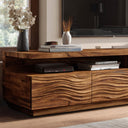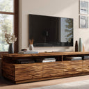 Enhance your space with the Modern TV Stand With Storage Cabinets For Living Room is designed to elevate media storage into a refined design statement. The wave-carved cabinet fronts and warm wood tones introduce depth, rhythm, and natural elegance, transforming the console into a true focal point.