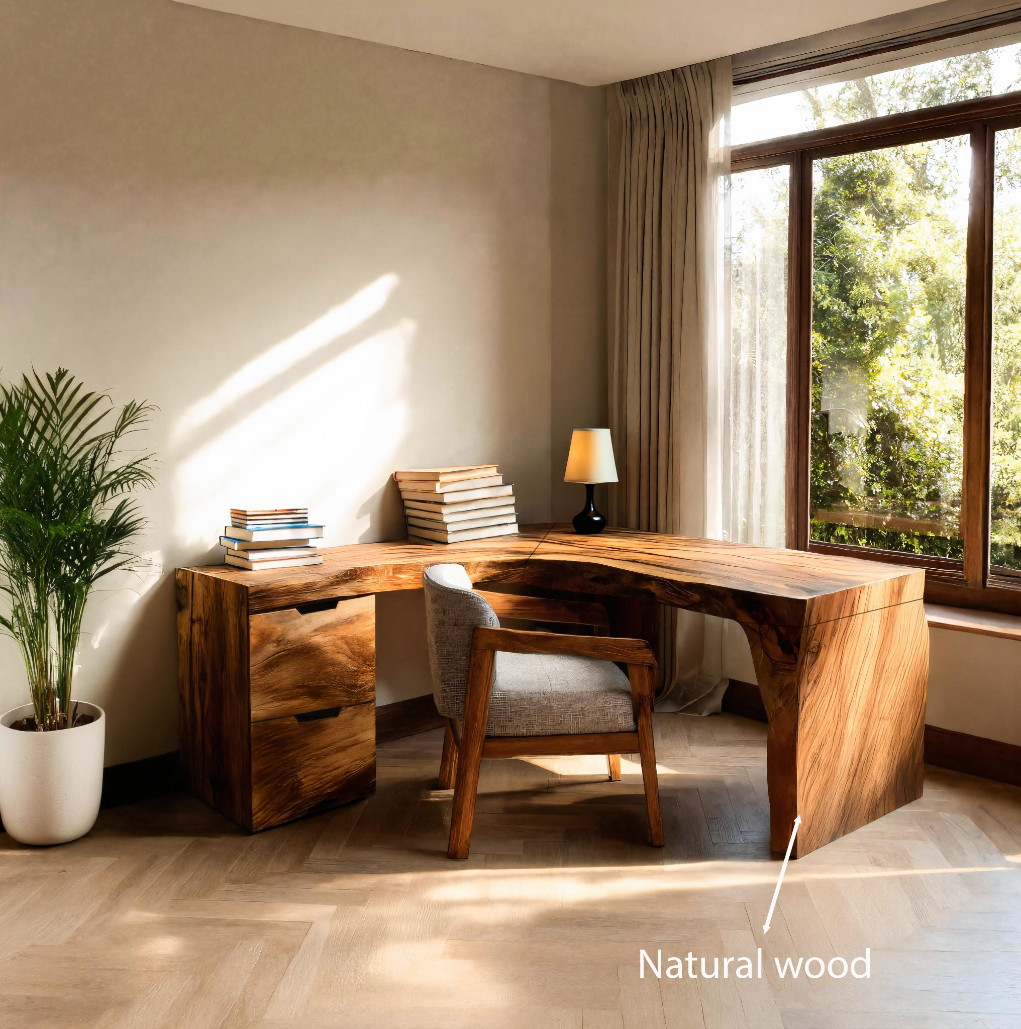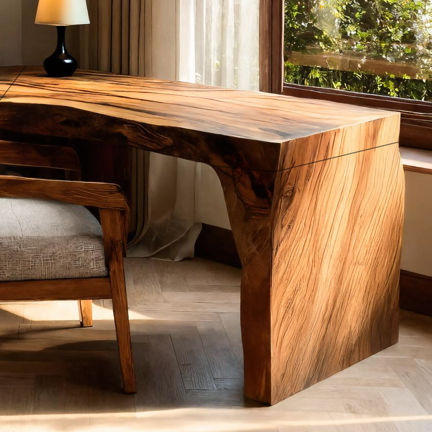 - Materials & Craftsmanship: Crafted from solid wood with rich, organic grain variation, the desk is handcrafted by skilled artisans using traditional woodworking techniques. Finished with eco-friendly oils for a smooth, satin surface, and a sculptural leg design creates an elegant and durable foundation.
