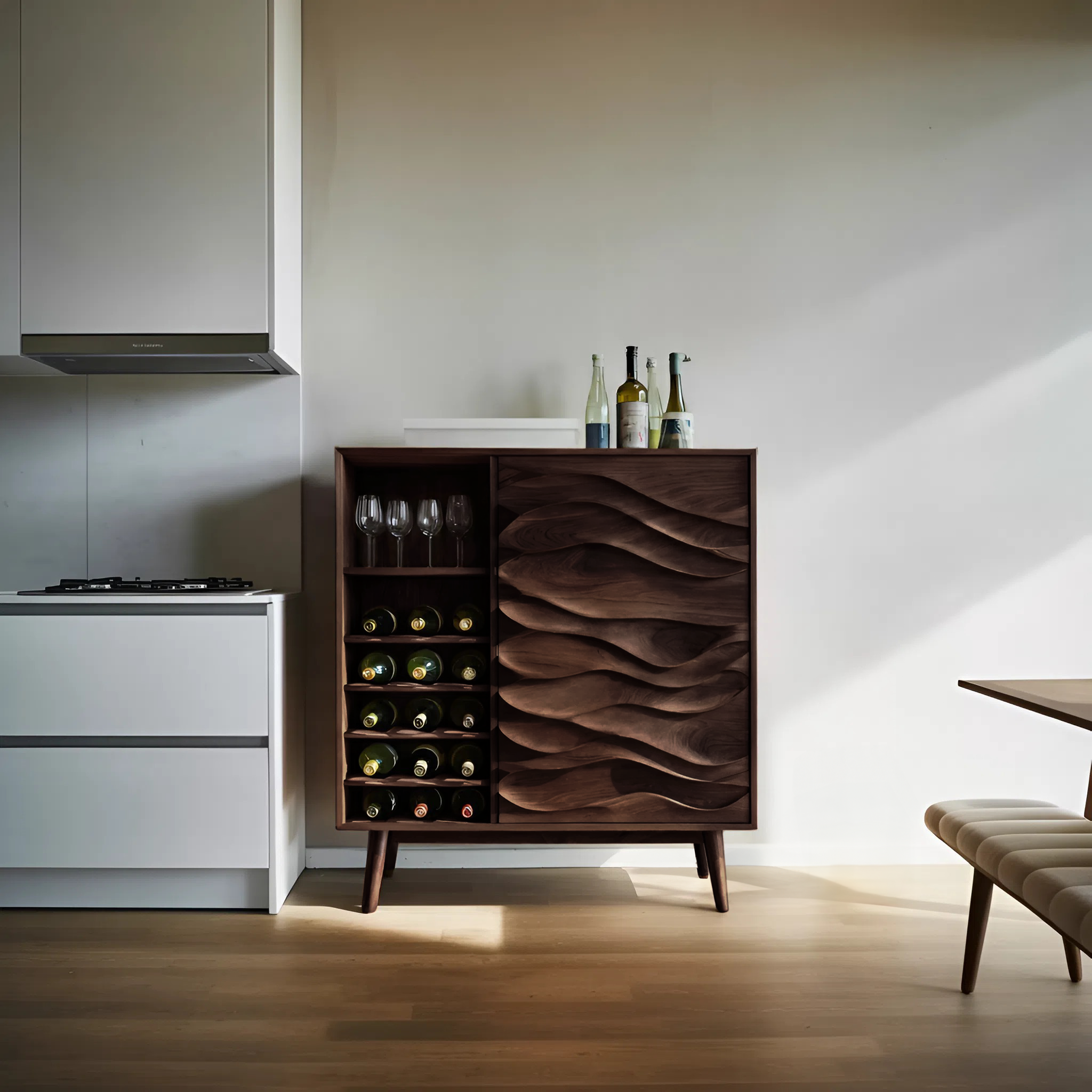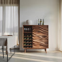 Sculptural Wine Cabinet With Wave Carved Doors For Kitchen