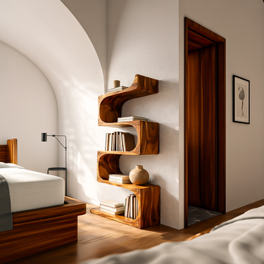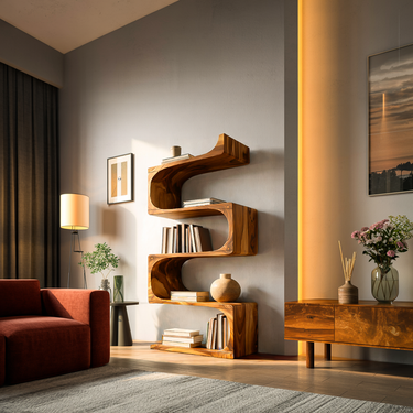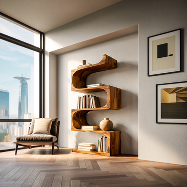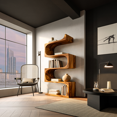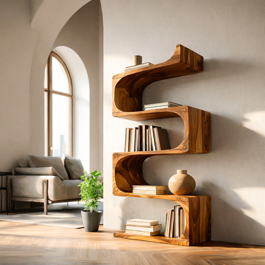Sculpted wooden waves shape our Modern Wooden Flowing Carved Bookshelf For Living Room, giving it its sculptural presence, transforming a simple wall shelf into a refined art piece. Each tier extends gracefully from the curved central spine, showcasing expressive grain patterns and offering spacious areas to display books, ceramics, plants, or decorative objects. Its organic silhouette brings warmth and visual rhythm, making it a captivating accent for bedrooms, reading corners, or any curated home interior.