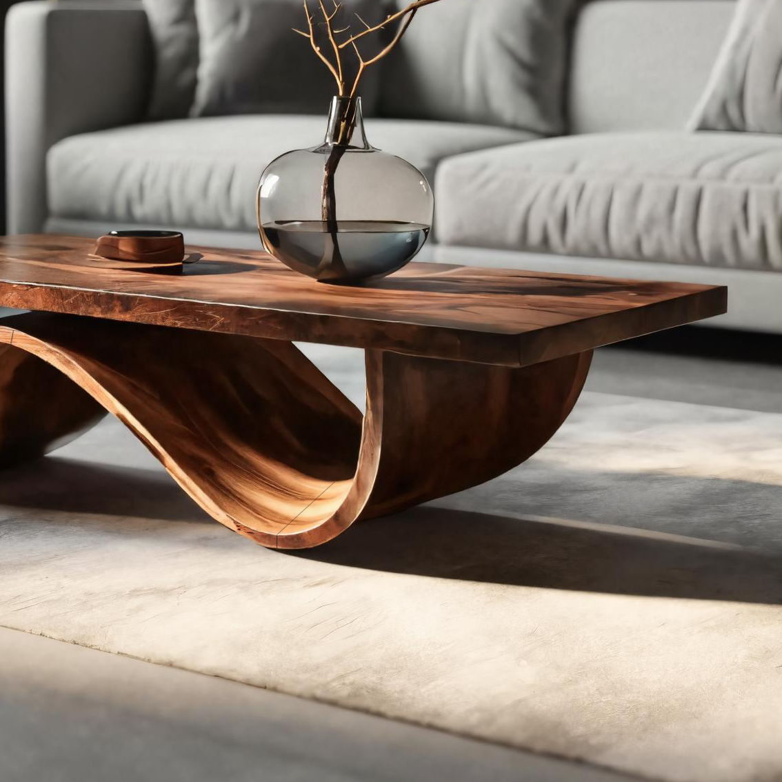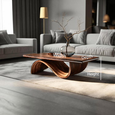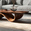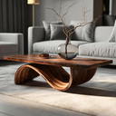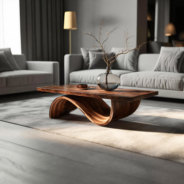 Formed through continuous curvature and sculpted restraint, Artistic Coffee Table Curved Base Design For Living Decor introduces a grounded composition where solid wood is shaped into a smooth, flowing base beneath a clean tabletop. The curved support creates an elegant loop of negative space, allowing light to pass through and softly reveal the natural grain movement across the surface. Each transition feels deliberate and fluid, giving the table a calm, sculptural presence within the room.