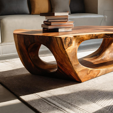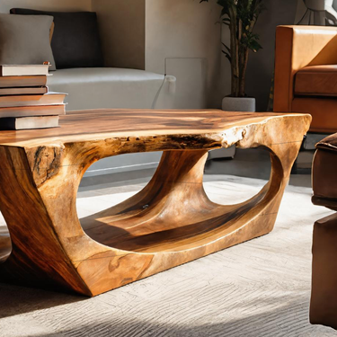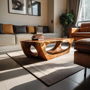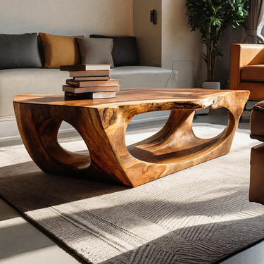 Carved through continuous flow and grounded form, Contemporary Sculpture Coffee Table For Modern Home introduces a sculptural presence where solid wood curves are shaped into an open, architectural base. The table’s flowing cut-outs and softened edges create visual depth while allowing natural grain patterns to remain clearly visible across every surface. Light passes through the negative space beneath the tabletop, giving the piece a sense of movement while maintaining a calm, grounded presence within the room.