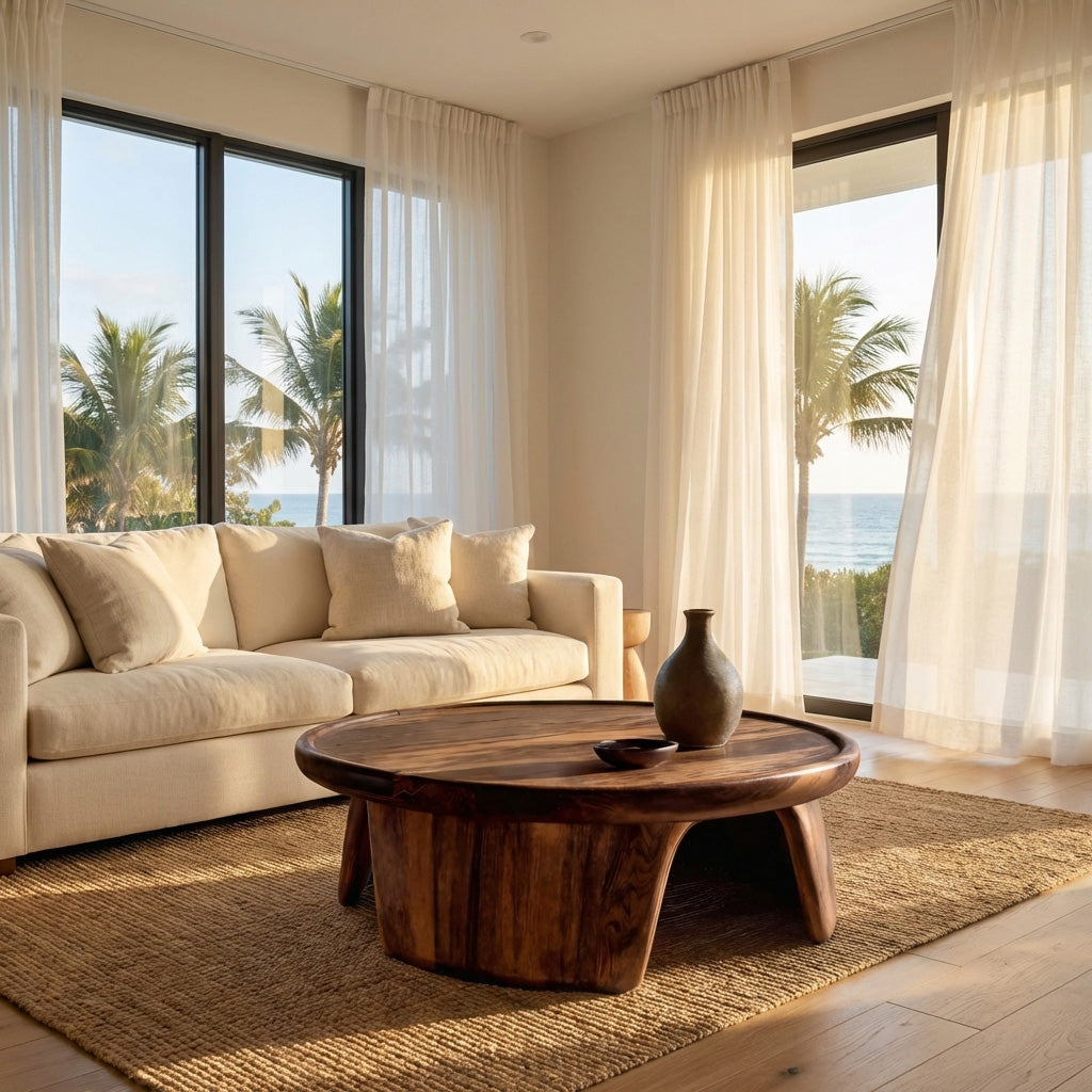 - Versatile Placement: Perfect for living rooms, lounge areas, conversation spaces, or open seating arrangements, this coffee table sits comfortably in front of sofas, sectionals, or accent chairs. Its rounded shape allows easy movement around the table while fitting naturally into both compact living rooms and larger open interiors.