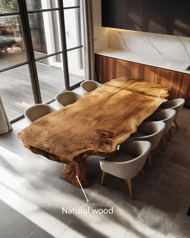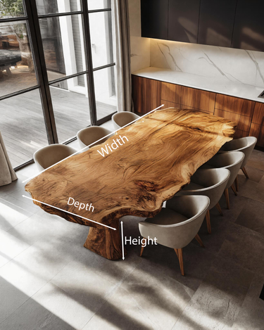 - Materials & Craftsmanship: Made from solid natural wood slab with grain, live edge, the hand-shaped live edges preserve the natural contours. The monolithic solid-wood base offers strength, and the eco-friendly oil finish enhances depth, warmth, and wood texture.