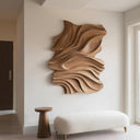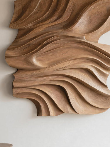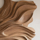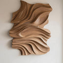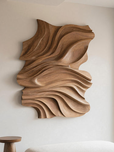 This wall art panel features a dynamic composition of waves and curves, carved into soft, overlapping layers that create a sense of gentle motion. The free-form silhouette brings an organic rhythm to the wall, while its dimensional structure casts subtle shadows that shift with the light. The result is a visually engaging artwork that enriches any space with texture and form.