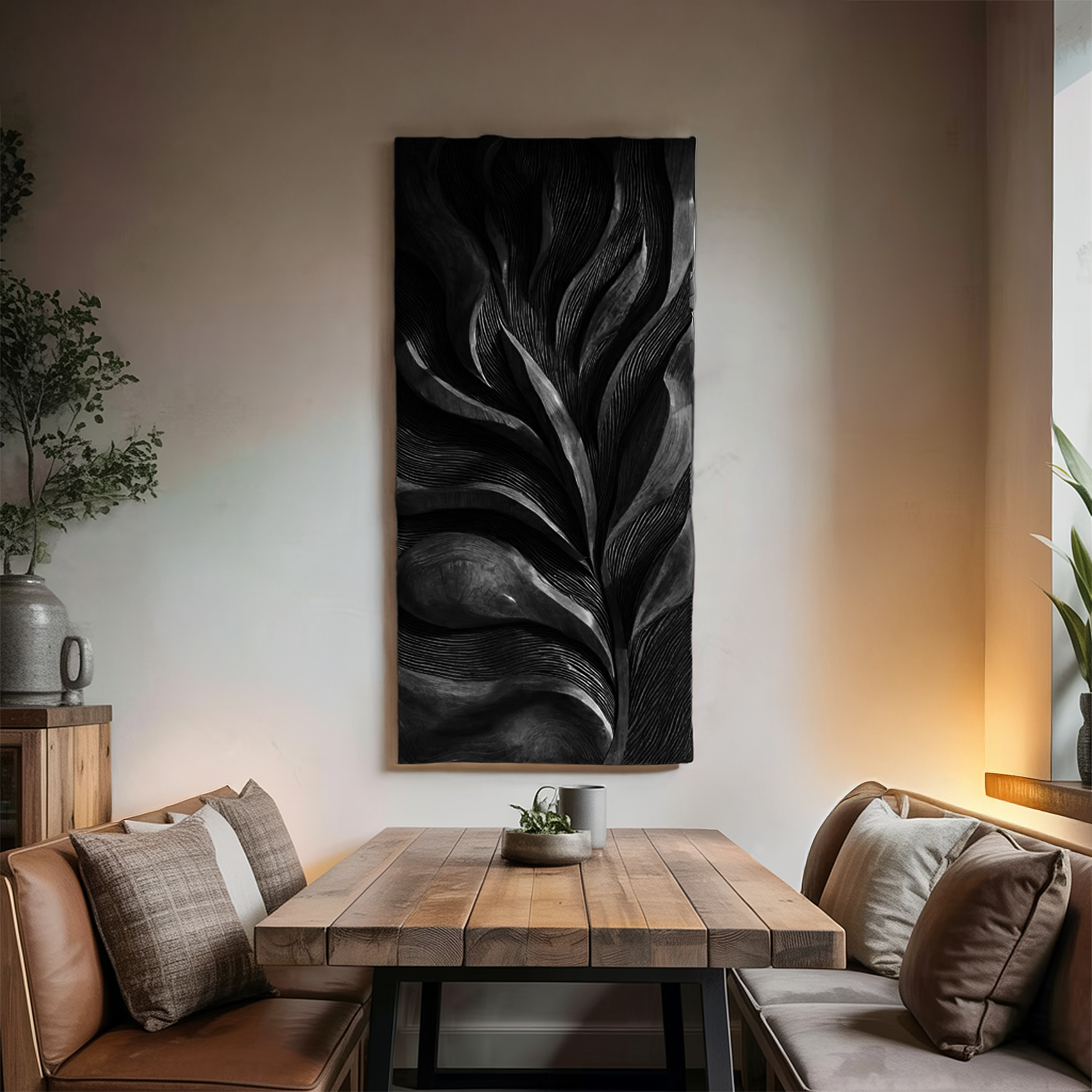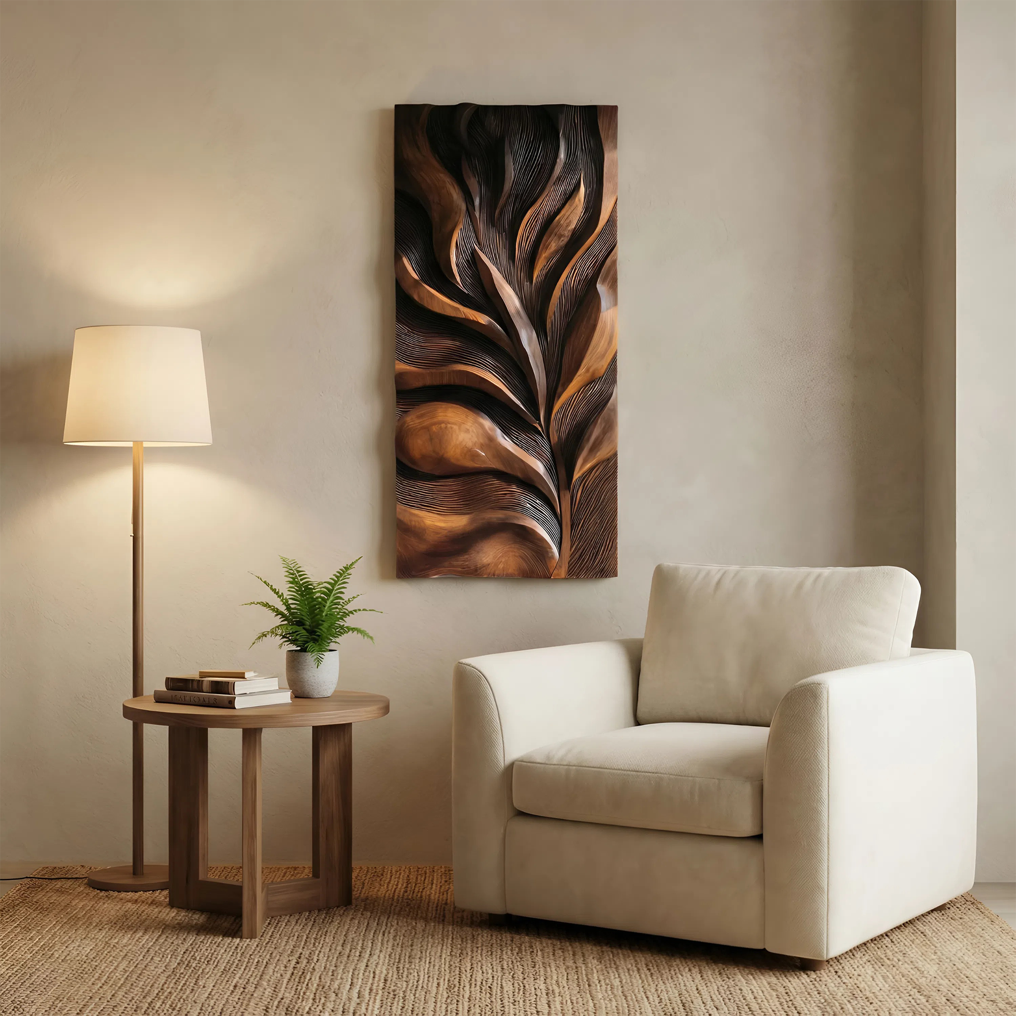 - Versatile Placement: Designed in a vertical format, this wall panel works well on narrow or tall wall sections, above sofas, in living rooms, entryways, or transitional spaces. Its organic flow complements both open layouts and more intimate interiors without overwhelming the surrounding décor.