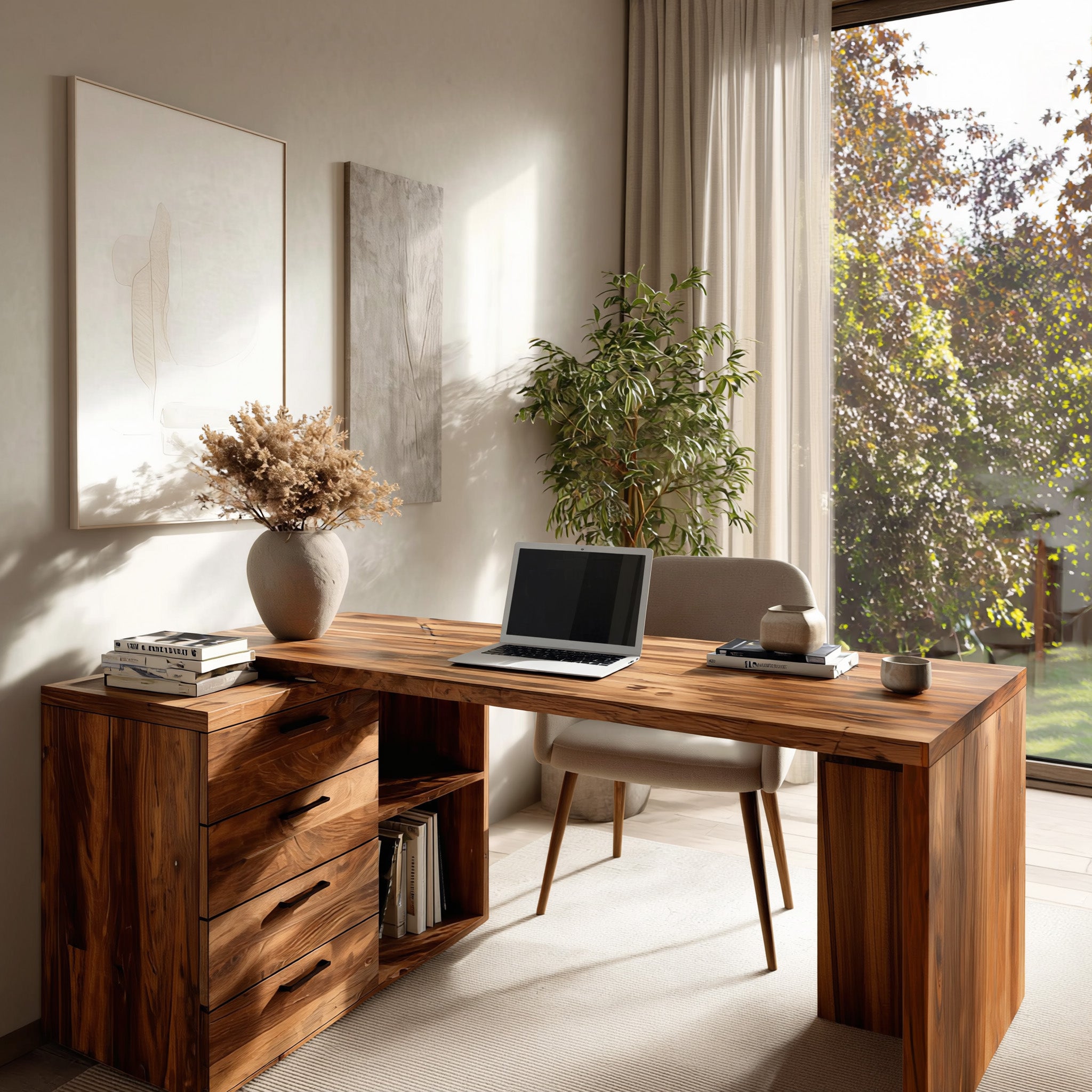 - Versatile Placement: Well suited for home offices, creative studios, study rooms, or quiet workspaces positioned near windows. Its generous proportions allow it to function as a primary workstation while still fitting comfortably within modern interior layouts.