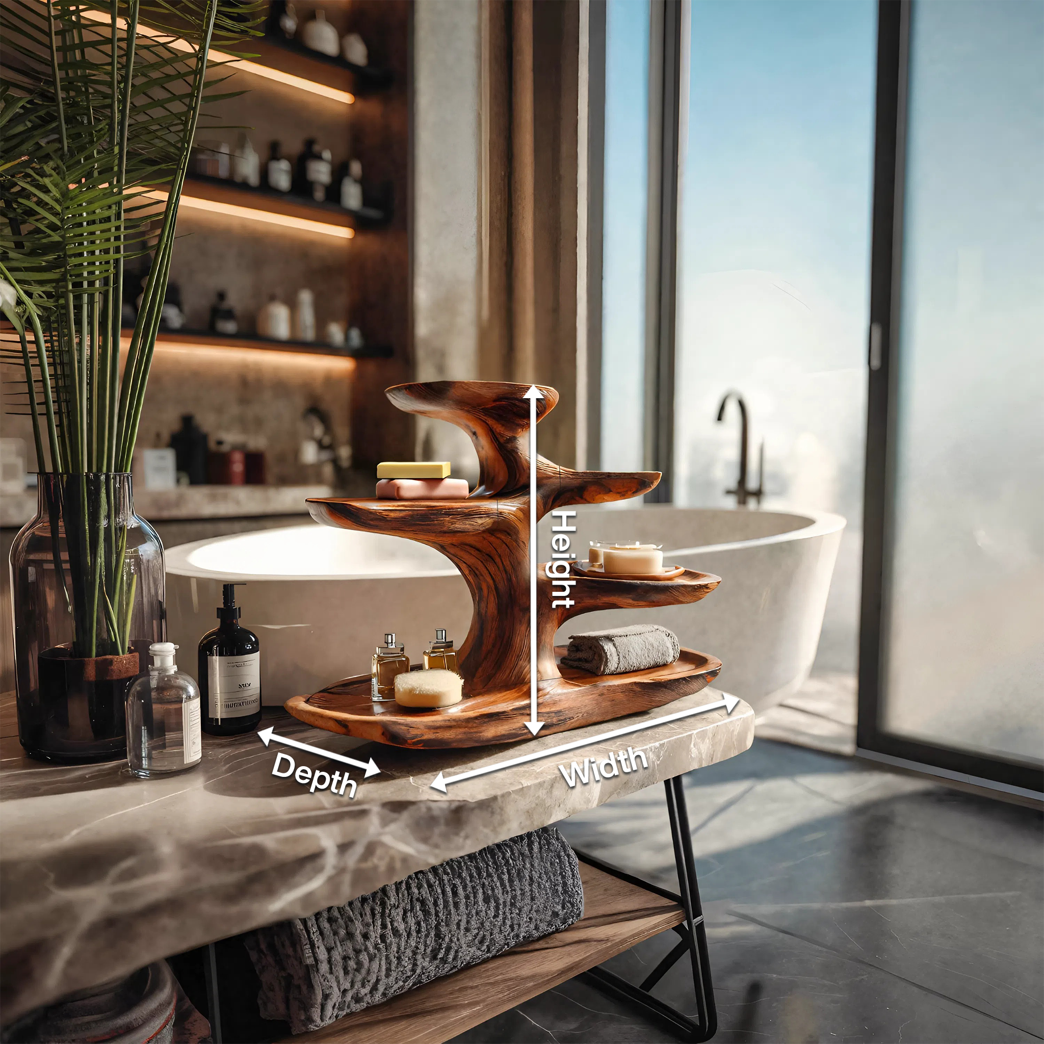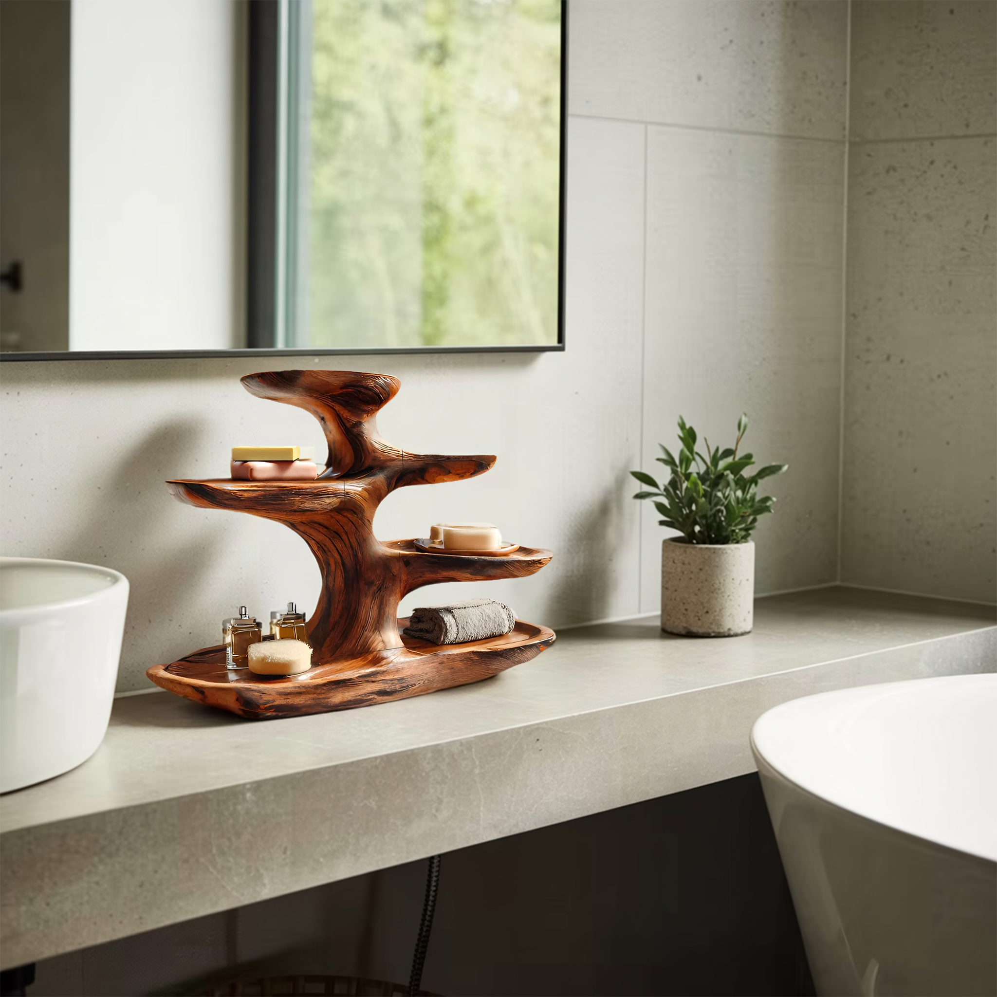 Refresh your space with the Modern Carved Bathroom Shelf For Bathroom Decor, a countertop storage piece shaped with flowing lines and layered surfaces. The gently stepped form introduces subtle movement while offering organized space for everyday items and decorative accents.