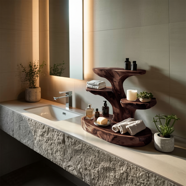 Bring natural elegance into your space with our Organic Multi Tier Bathroom Shelf For Spa is designed to elevate everyday storage into a refined wellness feature. The flowing form and carved tiers introduce warmth, balance, and visual harmony, creating a serene atmosphere within the bathing space.