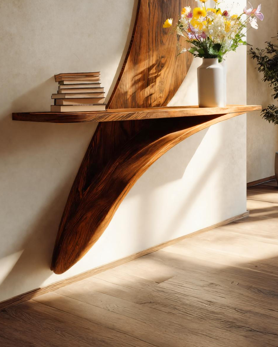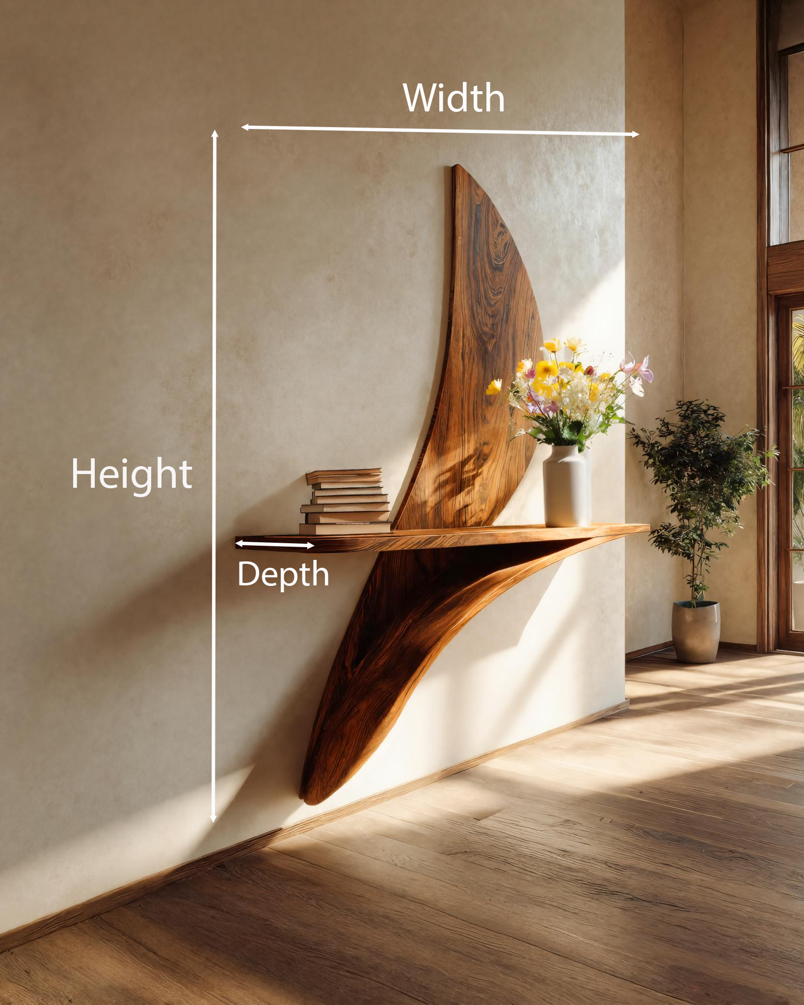 - Functional Benefits: The wall-mounted design saves floor space while adding visual impact. Its stable surface is suitable for books, small décor, or floral arrangements, and the sculptural structure adds character even when left minimally styled. The easy-to-clean finish makes it perfect for everyday use.
