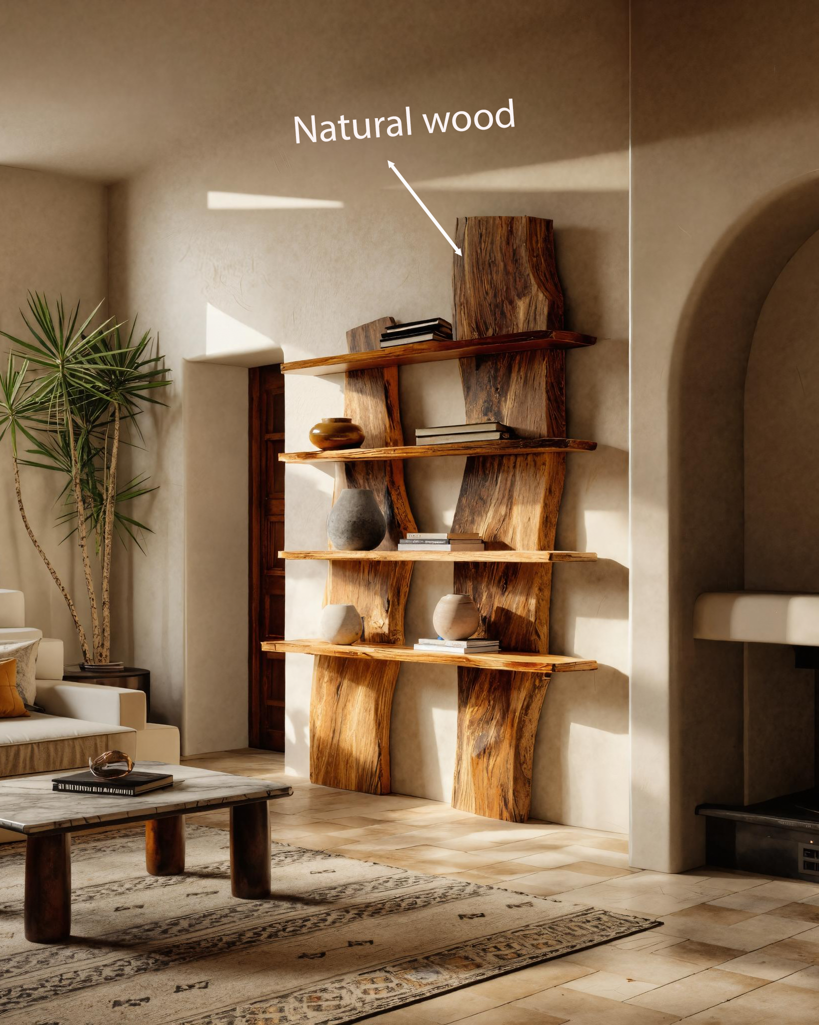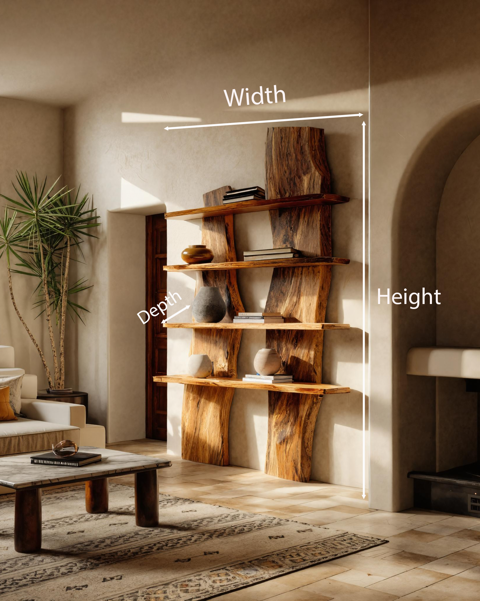 - Versatile Placement: Ideal for living rooms as a large decorative installation behind seating or near architectural features, this shelf complements modern, rustic-modern, minimalist, and organic-inspired interiors. It works beautifully in rooms with natural light, allowing shadows to enhance the curves and textures.