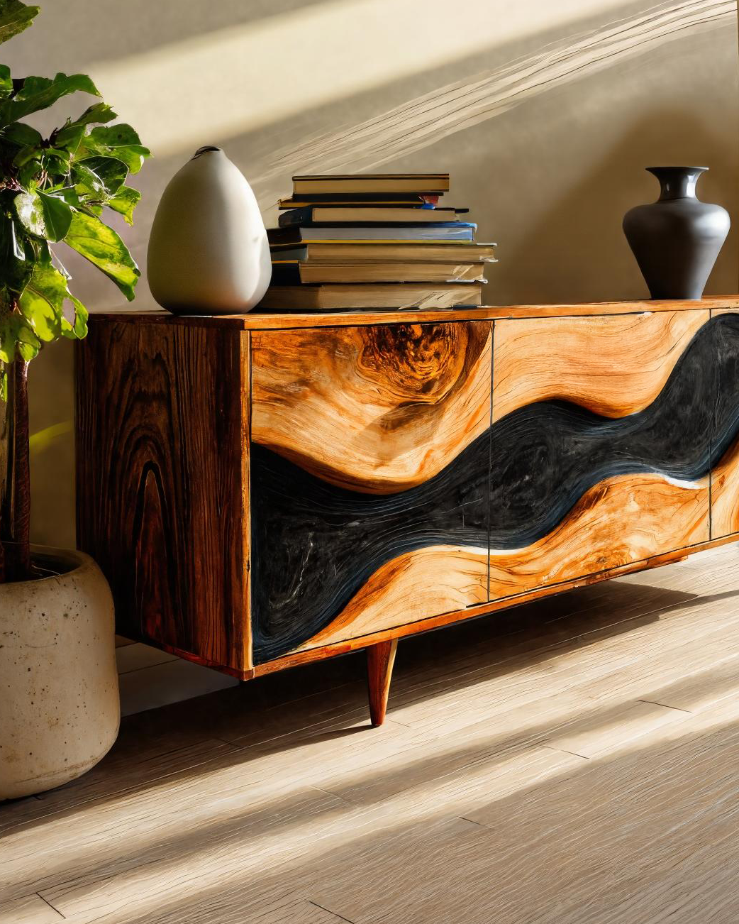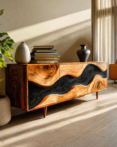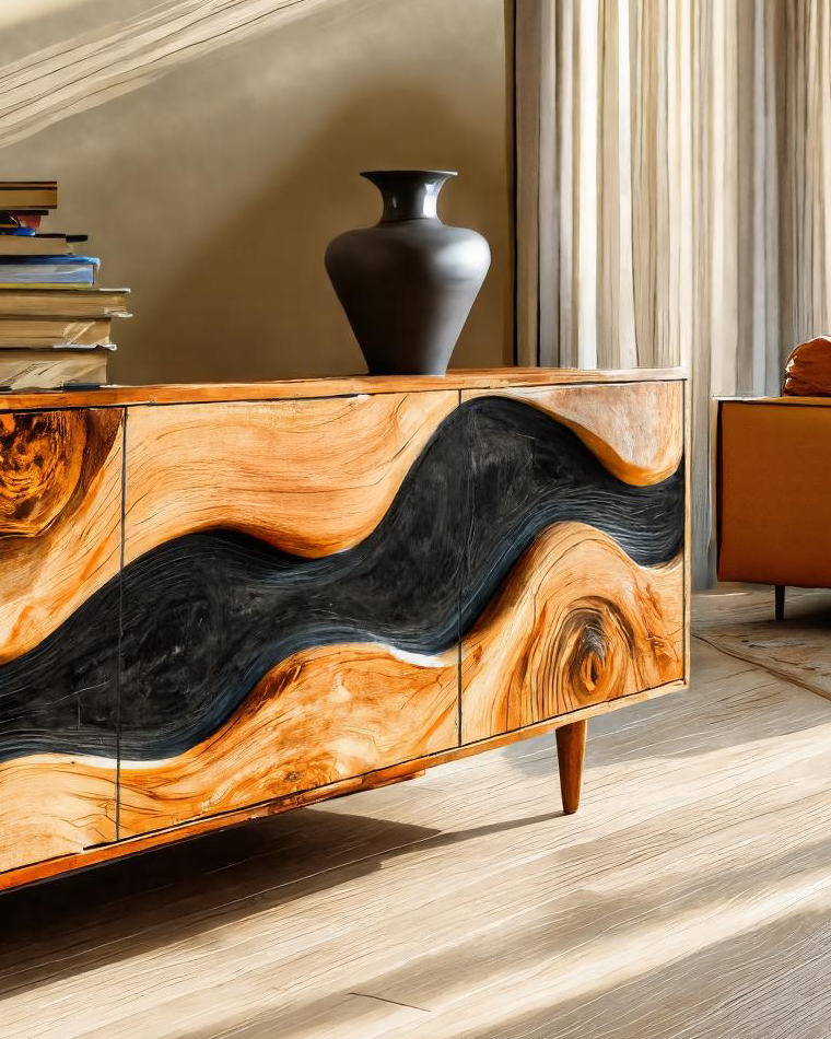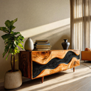 Inspired by the natural flow of wood and contemporary hand-carved design, the Organic Modern Cabinet Sculpted For Home Interior brings warmth, movement, and artistic texture into your living space. Its sculptural wave panels highlight the dramatic grain of solid wood, creating a captivating visual rhythm across the front. The hand-finished surfaces and refined proportions make it both a functional storage piece and a striking focal point within your home.