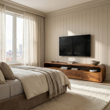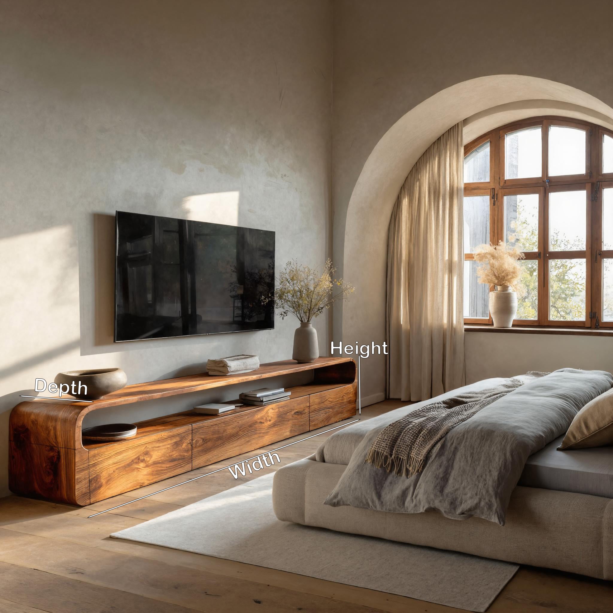 - Versatile Placement: Perfect for living rooms, media areas, bedrooms, or open-plan interiors, this console is designed to sit beneath wall-mounted televisions while maintaining a balanced visual presence along the wall. Its streamlined profile works especially well in calm interiors that highlight natural materials and soft architectural lines.