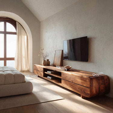 - Versatile Placement: Ideal for living rooms, media areas, bedrooms, or open-plan interiors, this console sits comfortably beneath wall-mounted televisions while complementing calm architectural spaces. Its elongated horizontal form works beautifully along larger walls and integrates naturally into interiors that emphasize organic materials and gentle forms.