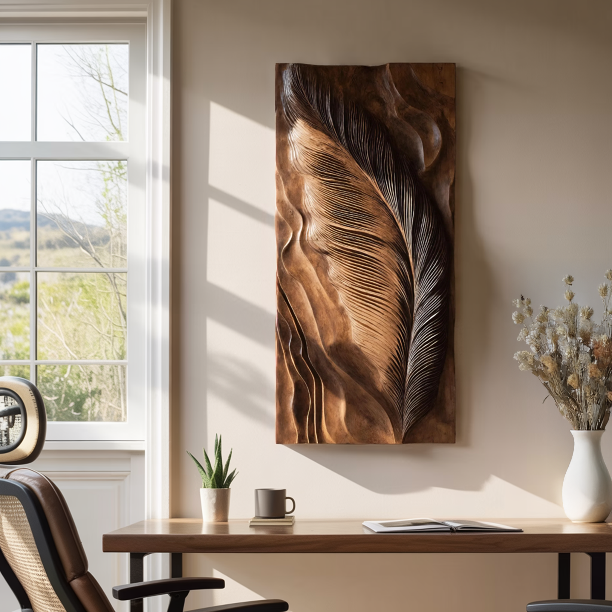 Hand Carved Feather Wall Art Design For Home