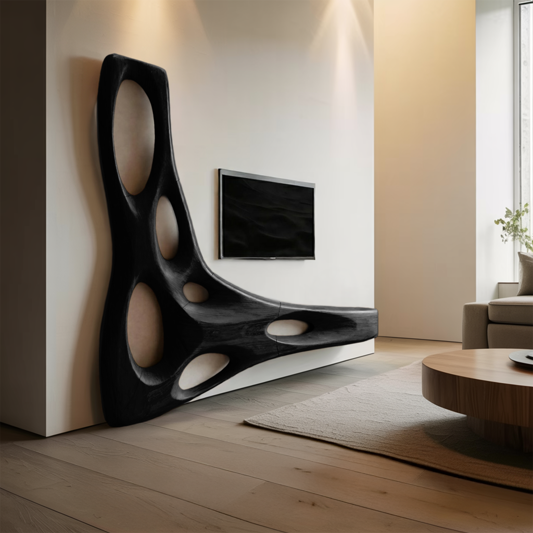 - Functional Benefits:Â The extended top surface offers space for media devices, books, or decorative objects while keeping the floor area clear. Sculptural openings maintain visual openness, enabling the console to serve both as functional storage and as a wall-mounted element that supports balance and spatial flow.