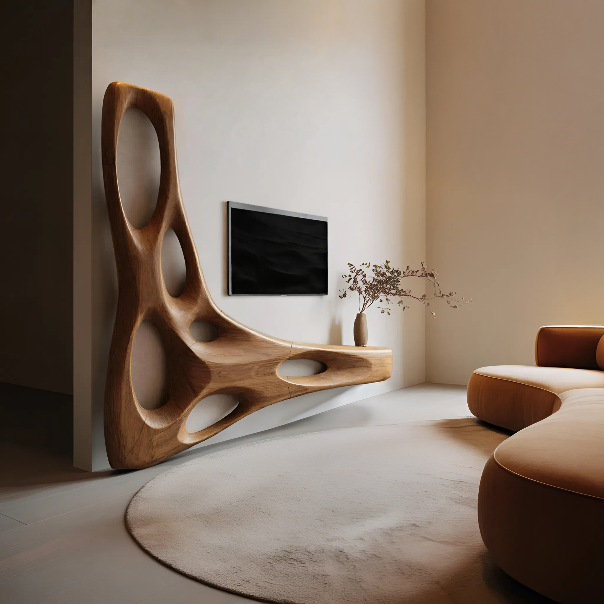 Artistic Organic Wall Mounted Media Console For Living Room