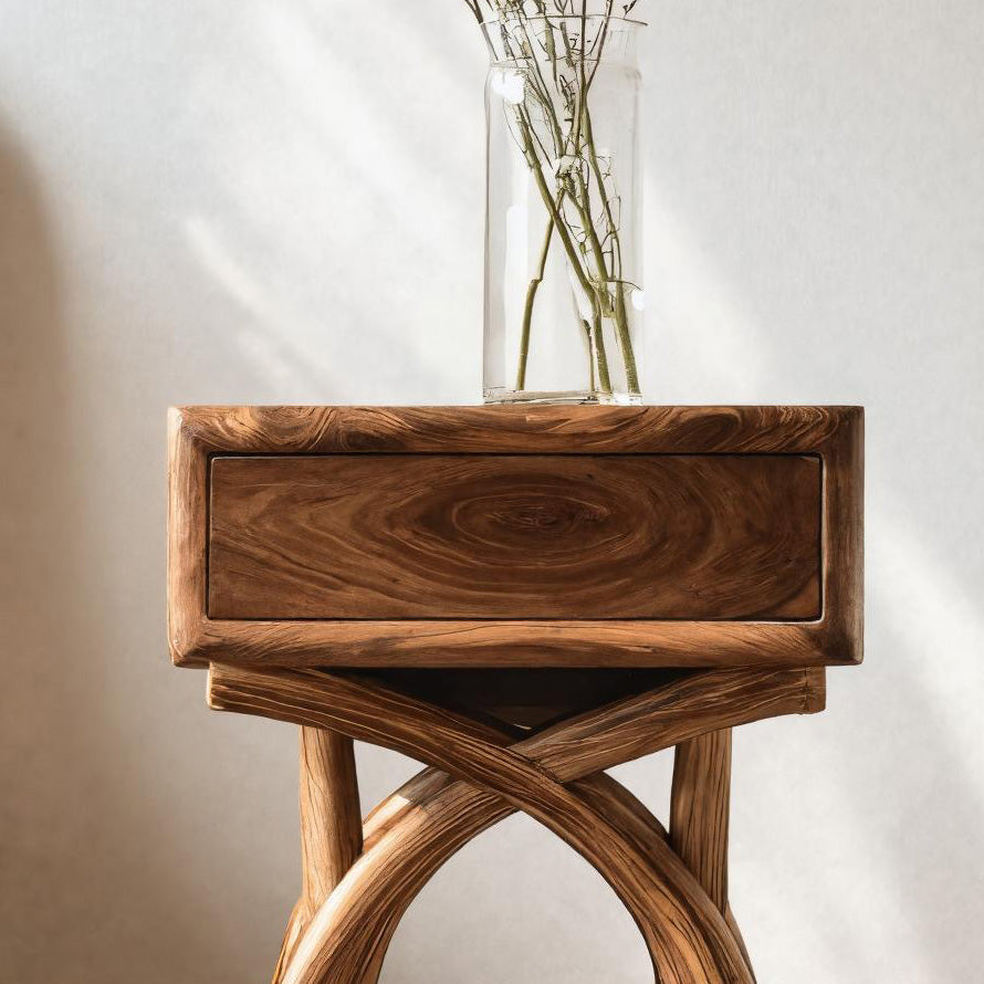 - Functional Benefits: A discreet drawer keeps essentials neatly stored while the sculptural base remains stable, adding both function and elegance without overwhelming the room.