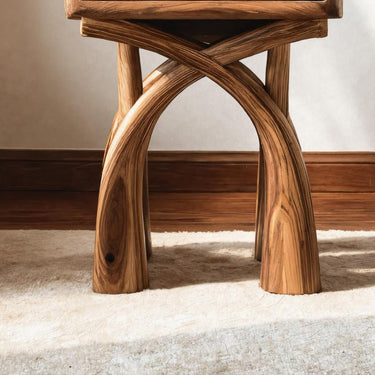- Materials & Craftsmanship: Made from solid natural wood with expressive, flowing grain, the hand-shaped curved structure features smooth, refined edges. It is purposefully sanded and finished to highlight natural color variations with an eco-friendly protective oil finish for warmth and durability, and using strong joinery techniques for long-lasting durability.