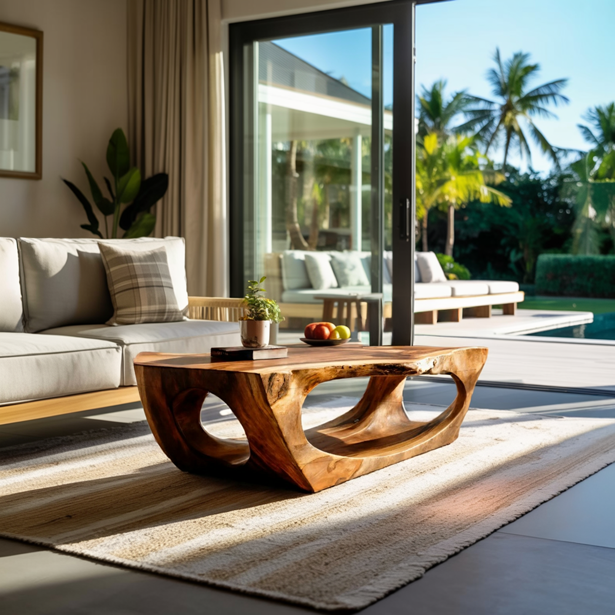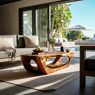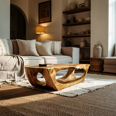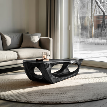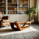 Carved through continuous flow and grounded form, Contemporary Sculpture Coffee Table For Modern Home introduces a sculptural presence where solid wood curves are shaped into an open, architectural base. The table’s flowing cut-outs and softened edges create visual depth while allowing natural grain patterns to remain clearly visible across every surface. Light passes through the negative space beneath the tabletop, giving the piece a sense of movement while maintaining a calm, grounded presence within the room.