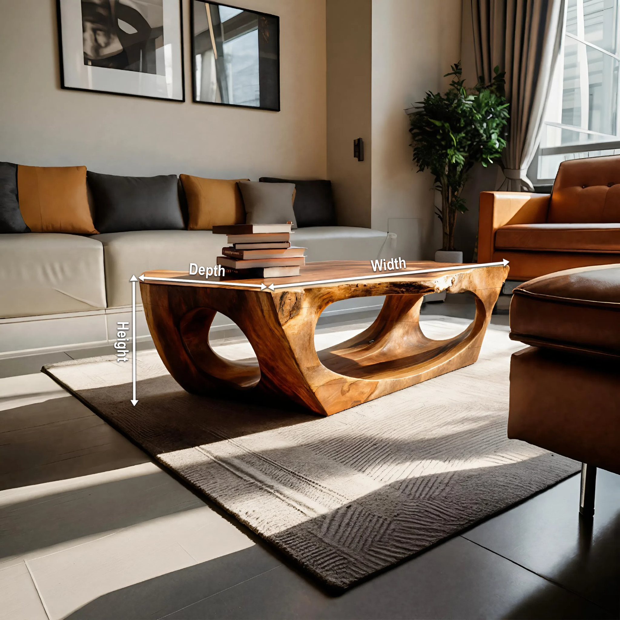 - Functional Benefits: The sculpted base provides open negative space that keeps the room feeling light and uncluttered while supporting everyday use. Its broad tabletop offers practical surface area for books, décor, or serving pieces, while the carved form transforms daily function into a visual focal point. The solid structure delivers stability without adding visual heaviness to the space.