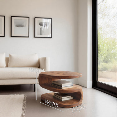 - Materials & Craftsmanship: Made from solid natural wood with expressive, flowing grain, the hand-shaped curved structure features smooth, refined edges. It is purposefully sanded and finished to highlight natural color variations with an eco-friendly protective oil finish for warmth and durability, and using strong joinery techniques for long-lasting durability.