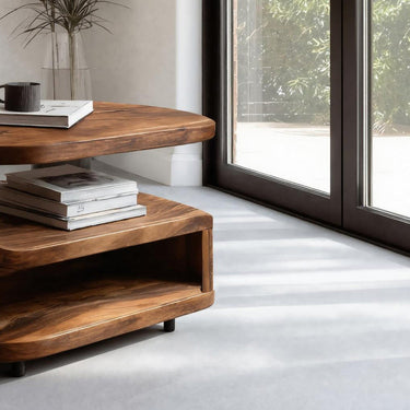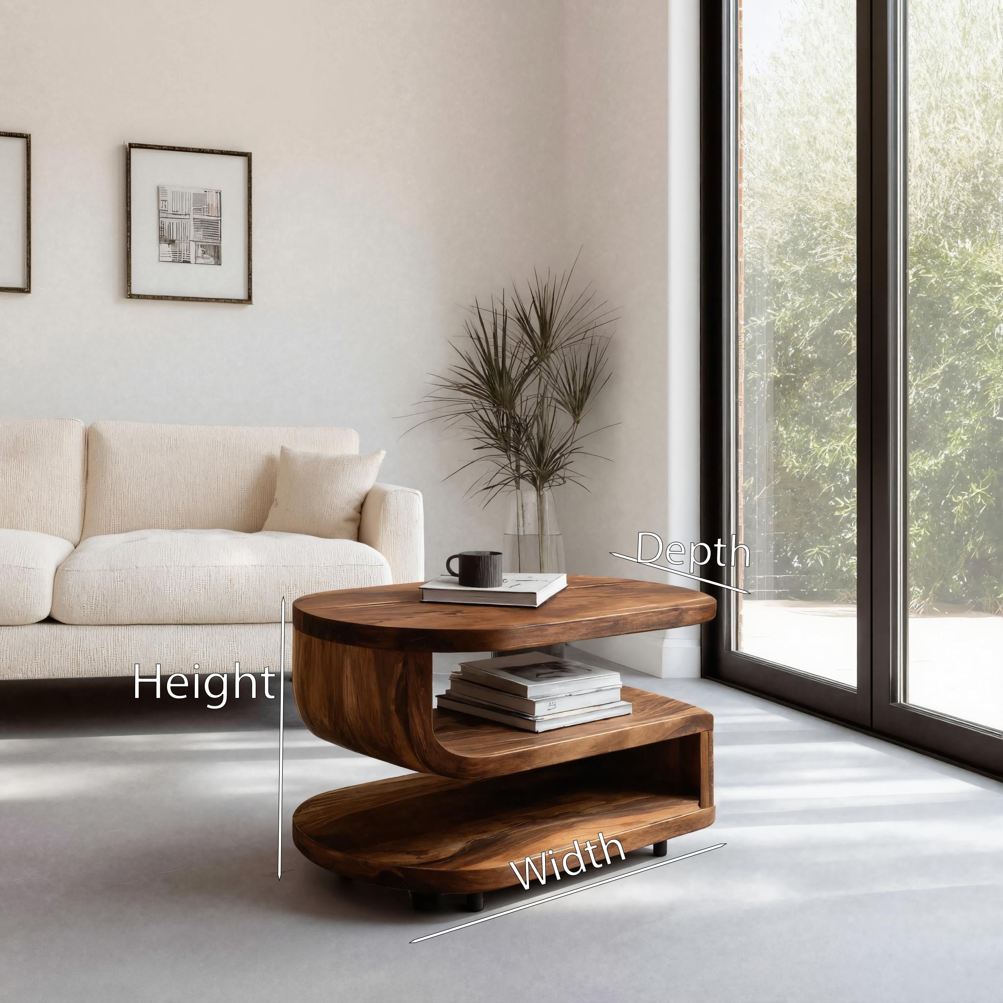 Handcrafted Sculptural Side Table Three Level For Living Room brings a sense of fluid artistry into your living space with its organically curved three-tier design. Each level is shaped to follow the natural flow of solid wood, creating soft transitions between surfaces and offering both functional storage and striking visual presence. This sculptural form enhances modern, minimalist, and nature-inspired interiors with warmth and elegance.