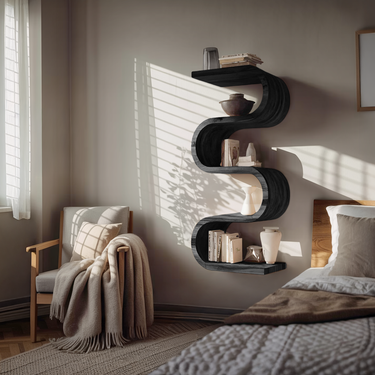 - Versatile Placement: Designed for both living rooms and bedrooms, this vertical wall bookshelf works beautifully beside a bed, near a window, or along narrow wall sections that require visual elevation. Its slim profile makes it ideal for smaller spaces while still offering strong sculptural presence.
