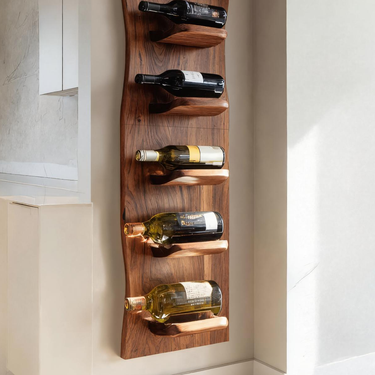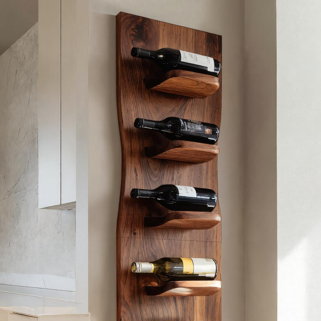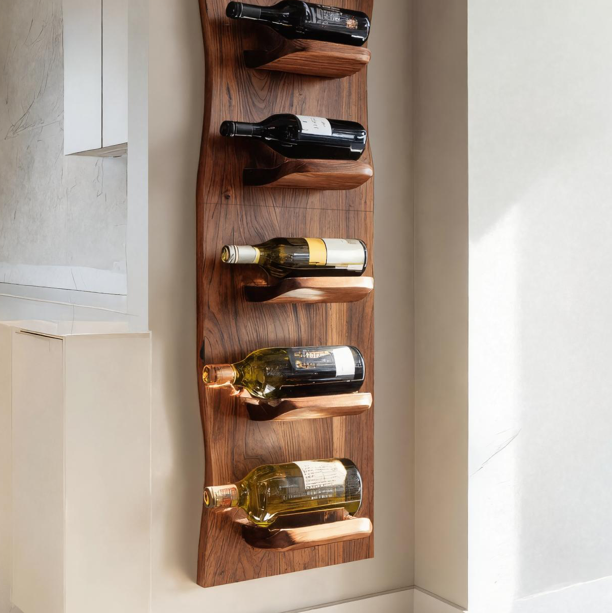 - Functional Benefits: The wall-mounted configuration keeps bottles securely stored while freeing up counter and cabinet space. Horizontal positioning supports proper wine storage, while the vertical layout makes individual bottles easy to access and visually organized. The sculpted wooden holders add dimension, turning everyday storage into a refined wall feature.