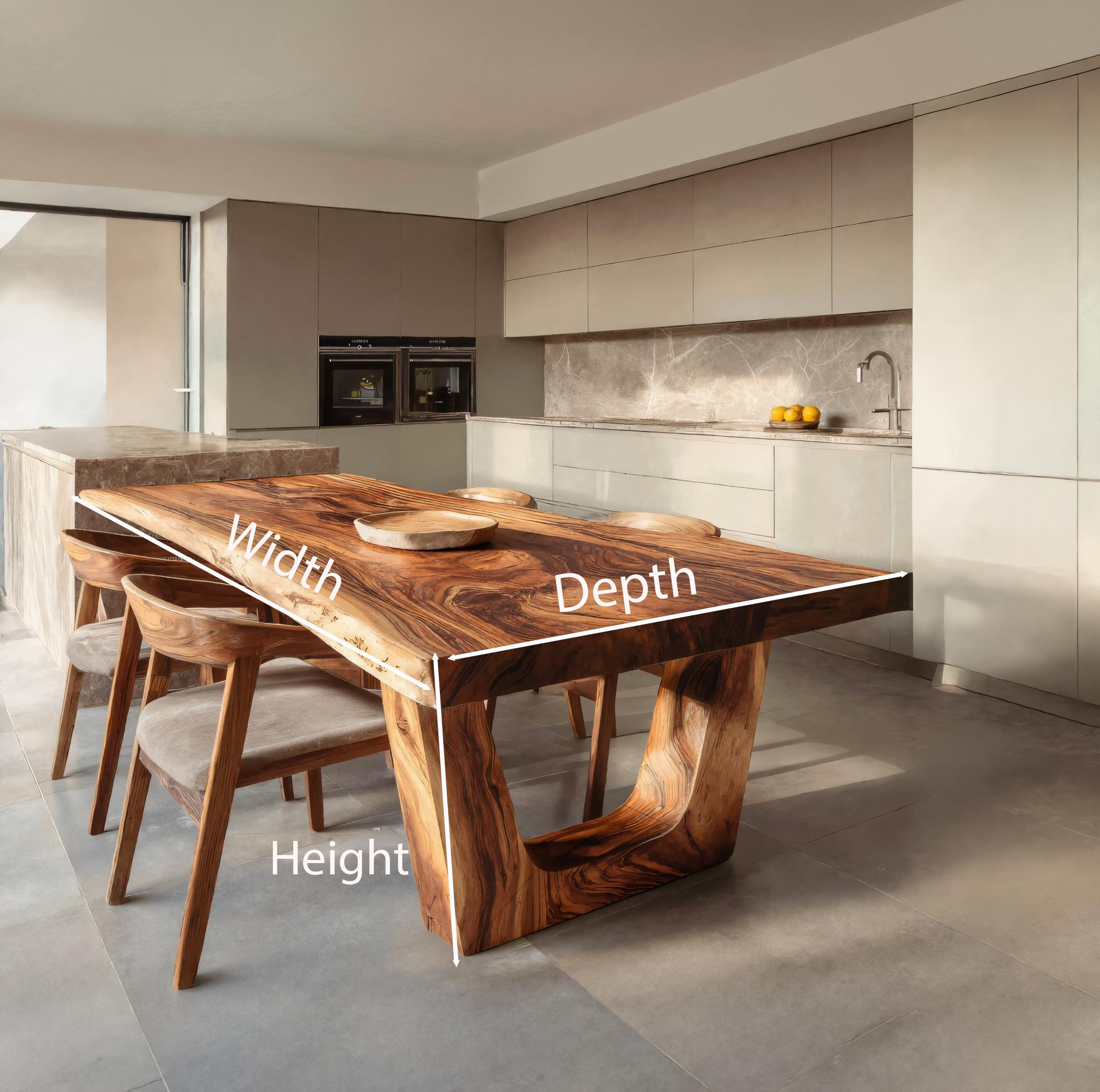 - Versatile Placement: This dining table integrates seamlessly into minimalist dining rooms, modern kitchens, or open-plan interiors. Its understated form pairs well with neutral seating, soft textiles, and clean-lined spaces where natural materials are meant to stand out without visual noise.