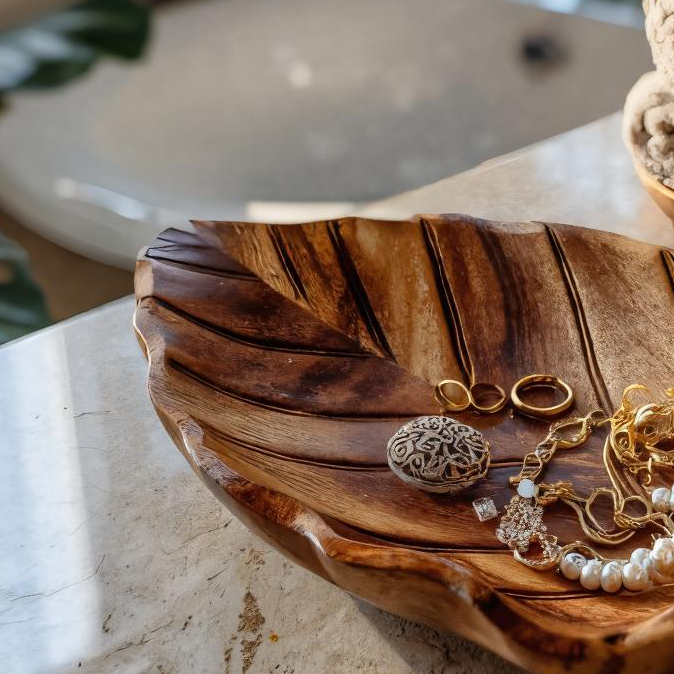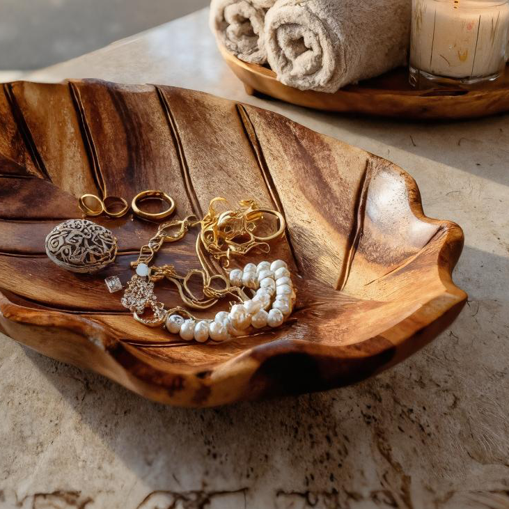 - Functional Benefits: The curved leaf bowl securely gathers rings, earrings, bracelets, and keepsakes, preventing them from sliding while keeping everything visible and within easy reach. Its generous width accommodates both small accessories and larger beauty items, helping maintain an organized and elevated space.