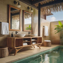 - Versatile Placement: Well-suited for primary bathrooms, guest bathrooms, or ensuite spaces, this vanity cabinet integrates naturally beneath single or double mirrors. Its freestanding construction allows flexible placement against tiled walls, stone surfaces, or minimal backdrops without dominating the room.