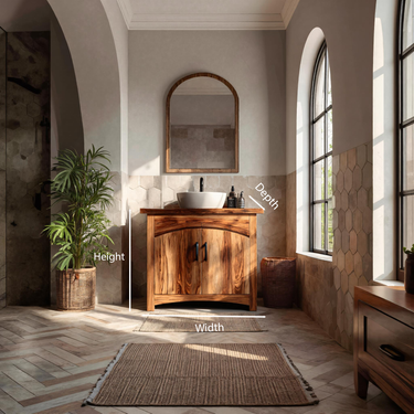 - Functional Benefits: The enclosed cabinet provides practical storage for toiletries and personal items, keeping everyday essentials neatly tucked away. The countertop offers sufficient surface area for a vessel sink and daily-use items, while the raised base helps maintain a sense of openness and allows easier floor cleaning around the unit.