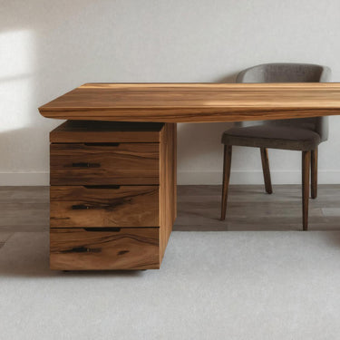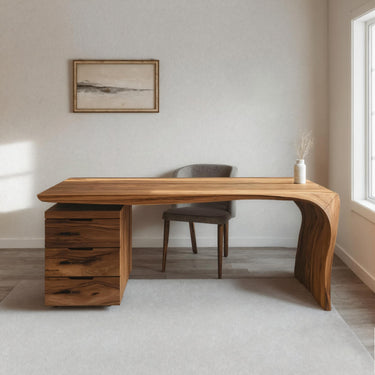- Functional Benefits: The spacious drawer cabinet keeps documents and daily essentials neatly organized, while the sweeping carved leg provides open legroom and visual lightness. The wide tabletop accommodates laptops, monitors, planners, and decor, supporting a comfortable and efficient workflow.