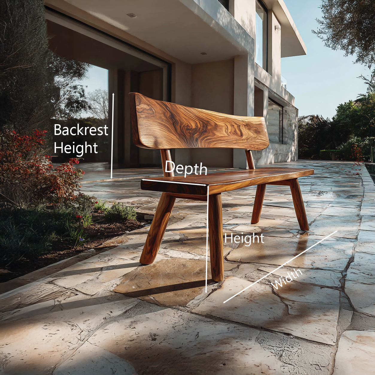 - Versatile Placement: Well suited for garden landscapes, patio terraces, courtyard paths, or modern outdoor living spaces, this bench integrates smoothly into architectural and natural environments. Its balanced proportions allow it to sit comfortably beside planted areas, along stone walkways, or within open outdoor seating zones.