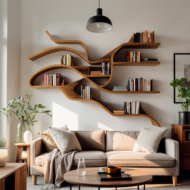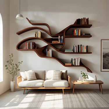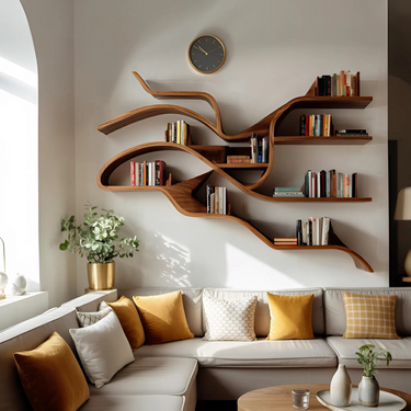 Bring a touch of artistry to your interior with the Modern Sculptural Wall Shelf For Living Room, a floating display piece shaped to bring visual movement and open balance to vertical surfaces. Branch-like curves extend across the wall, allowing books and objects to appear naturally arranged while keeping the overall composition light and composed.