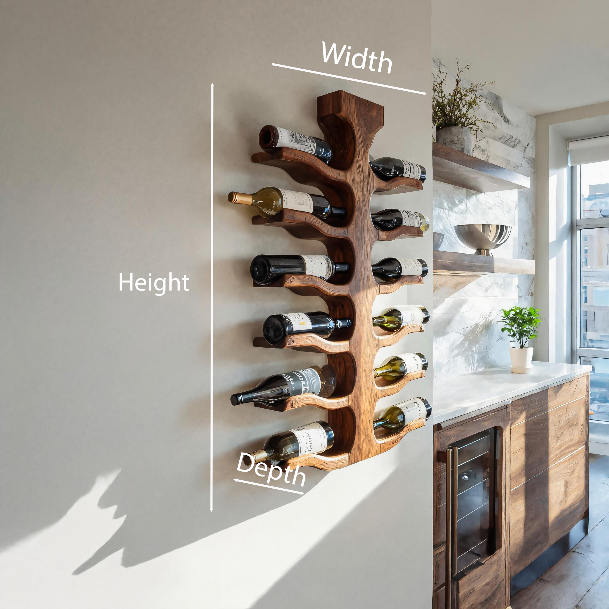 - Versatile Placement: Well-suited for home bars, dining areas, kitchen walls, or entertaining corners, this wall-mounted wine rack integrates easily into both compact and open layouts. Its vertical orientation makes it especially effective on narrow wall sections or columns where traditional cabinetry may not fit.