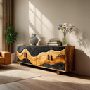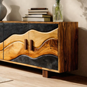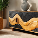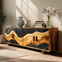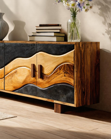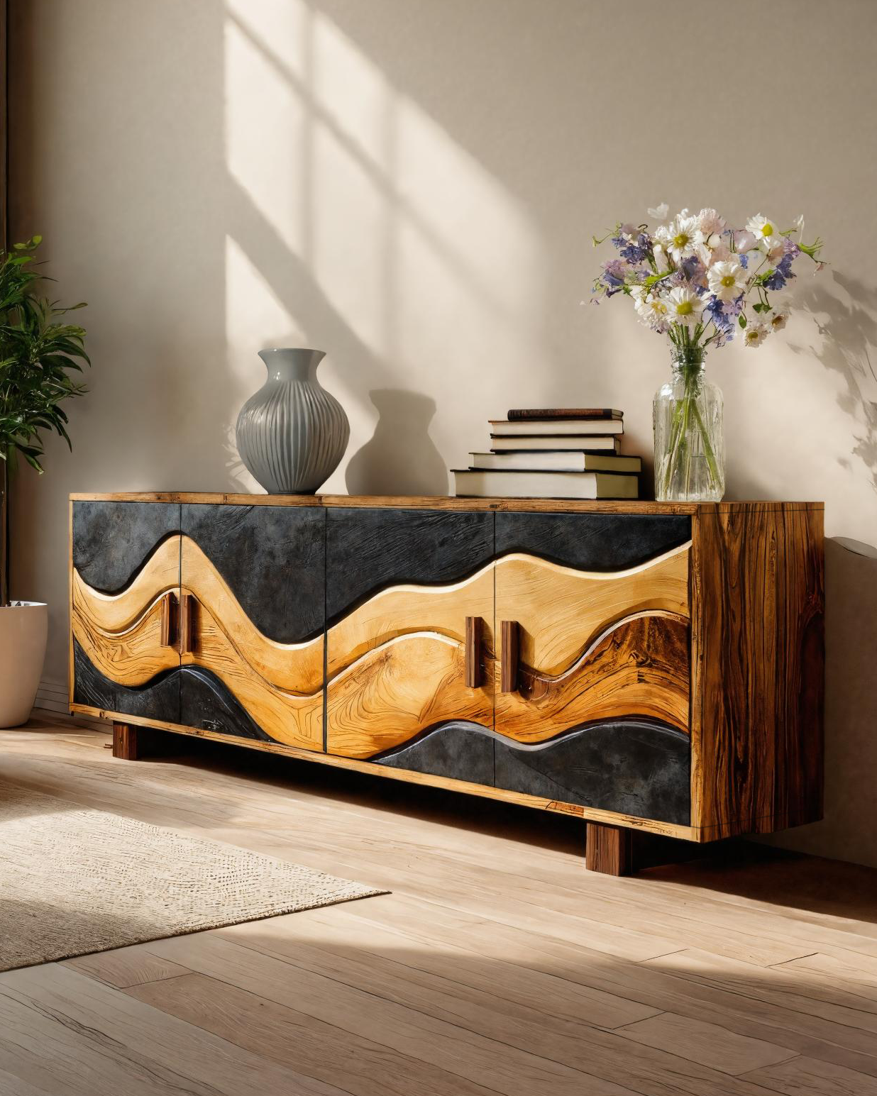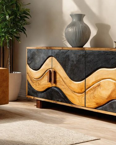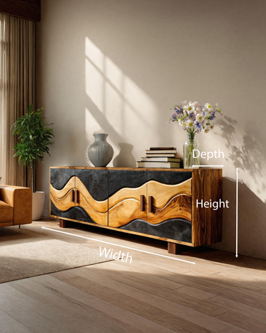 - Materials & Craftsmanship: Crafted from solid wood with bold, expressive grain patterns, the hand-carved wave detailing adds depth, movement, and artistic texture. Finished with eco-friendly oils for a warm, natural sheen, it is supported by sleek, sturdy legs that enhance its modern character.