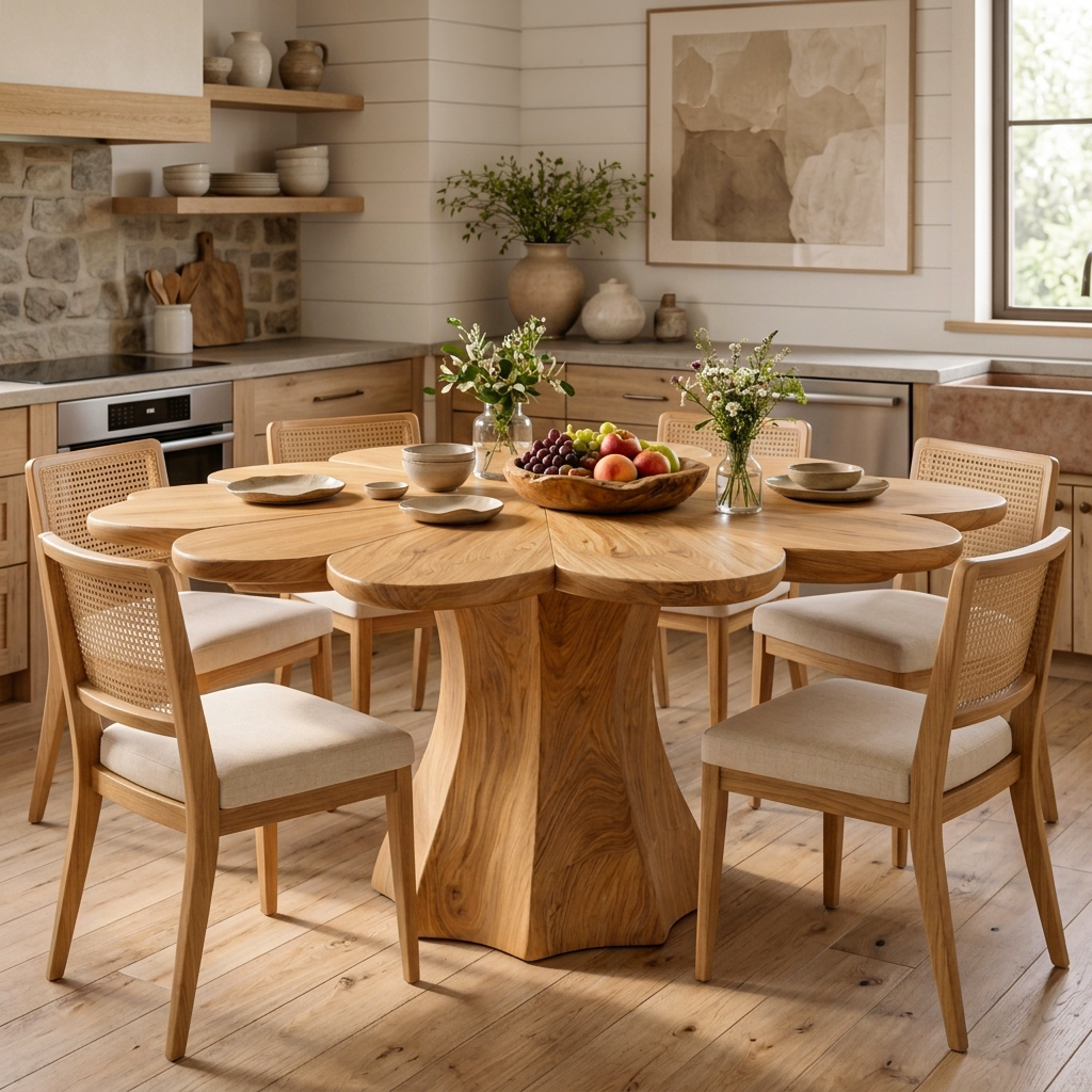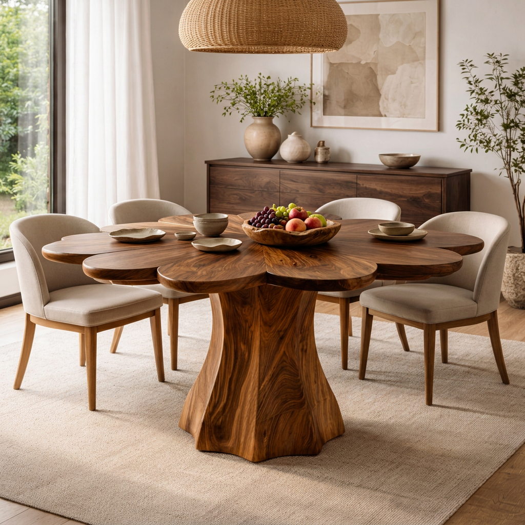 Modern Wooden Dining Table With Petal Top For Dining Area