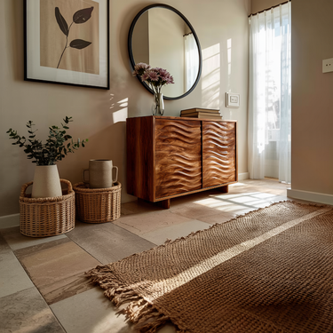 - Versatile Placement: Perfect for living rooms, dining spaces, entryways, or open interior areas, this sideboard fits comfortably along feature walls, beneath mirrors or artwork, or beside seating areas. Its balanced proportions allow it to complement both compact spaces and larger interiors while introducing texture and warmth to the surrounding environment.