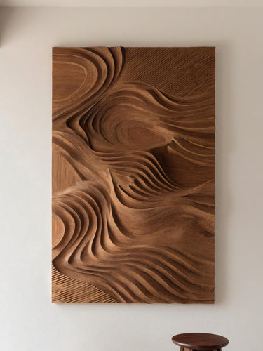 Transform your space with the flowing texture of our Organic Handcrafted Wall Art Panel For Home Interior, a sculptural wooden piece designed to introduce depth and natural motion to contemporary rooms.