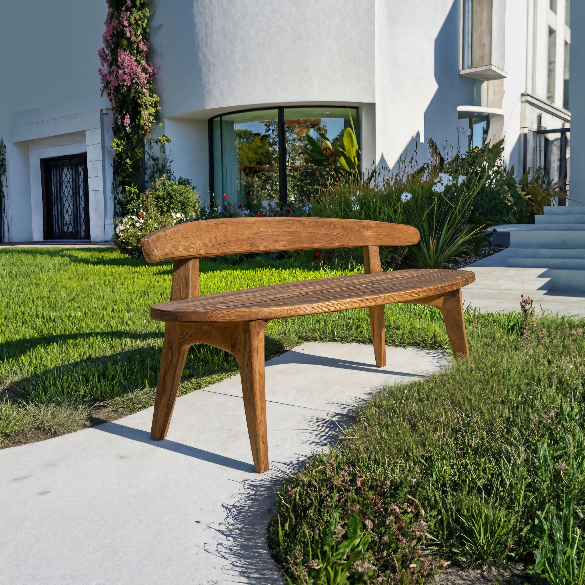 Organic Outdoor Bench With Curved Backrest For Patio