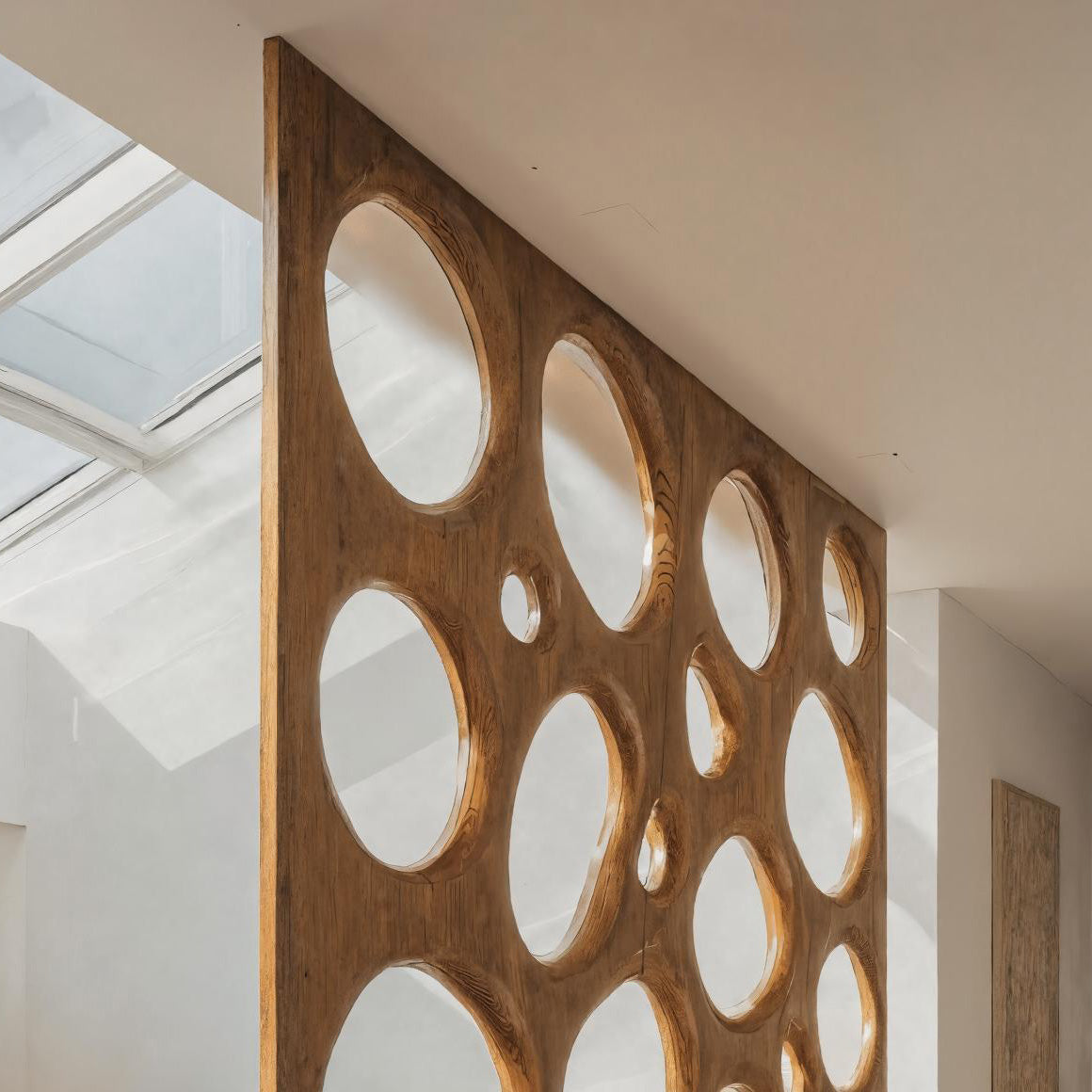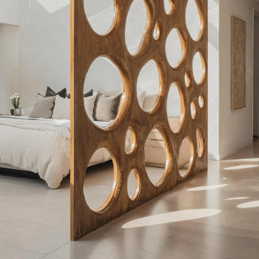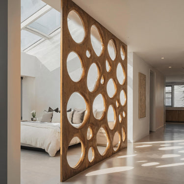 Bringing an artistic sense of flow into your space, the Organic Sculptural Room Divider Circle Partition For Living Room introduces soft curves and playful circular cutouts that gently separate areas without blocking light. Its openwork design adds movement and character, making it both a functional divider and a sculptural feature within the home.