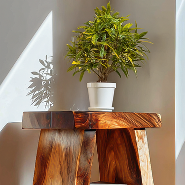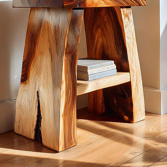 Solid wood presence and expressive grain define Rustic Handmade Side Table For Living Room as a functional accent that quietly anchors the space. Its sculptural form highlights the natural character of the wood, turning a compact side table into a visual element that supports both daily use and thoughtful display. Subtle variations in tone and texture allow the piece to interact naturally with surrounding light, making it a versatile addition to living areas, seating corners, or intimate interior settings.